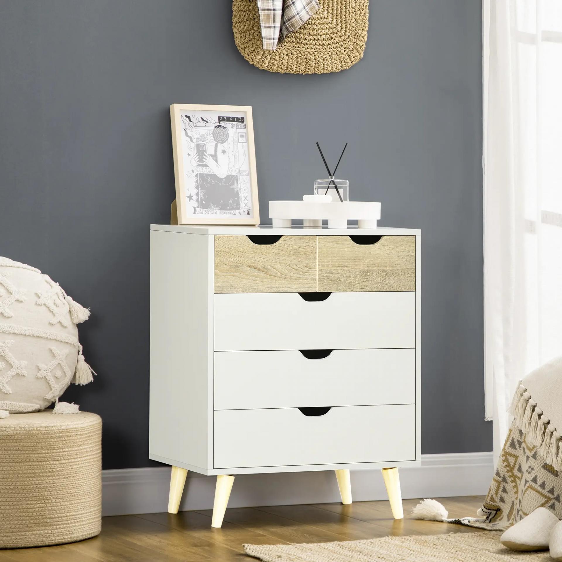 Cómoda con 5 Cajones Cajonera para Dormitorio Salón Estudio Estilo Moderno 60x40x77,5 cm Natural y Blanco
