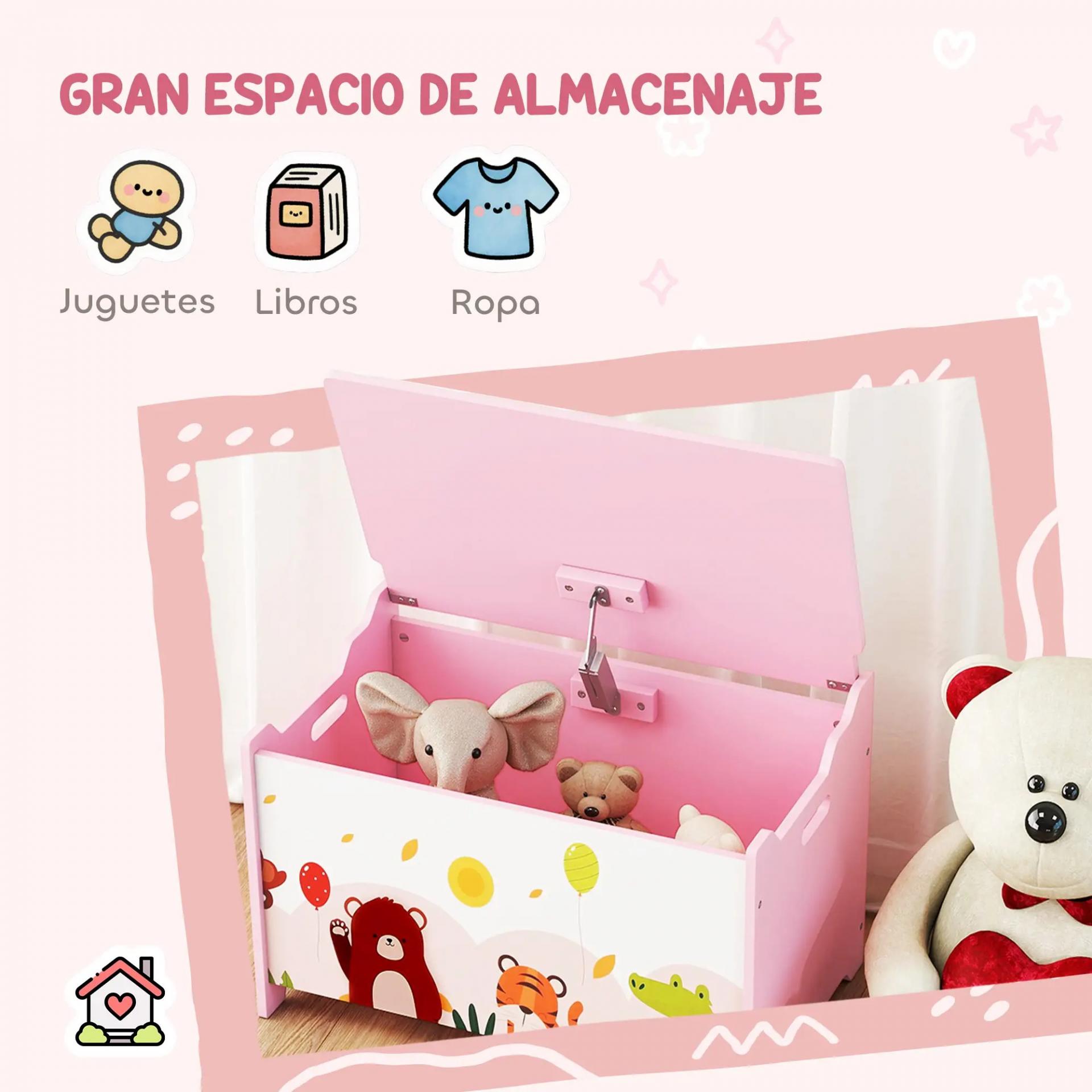 de Almacenaje de Juguetes Baúl Juguetes Infantil con Tapa Abatible Asas Estampados de Animales 60x37x39 cm Rosa