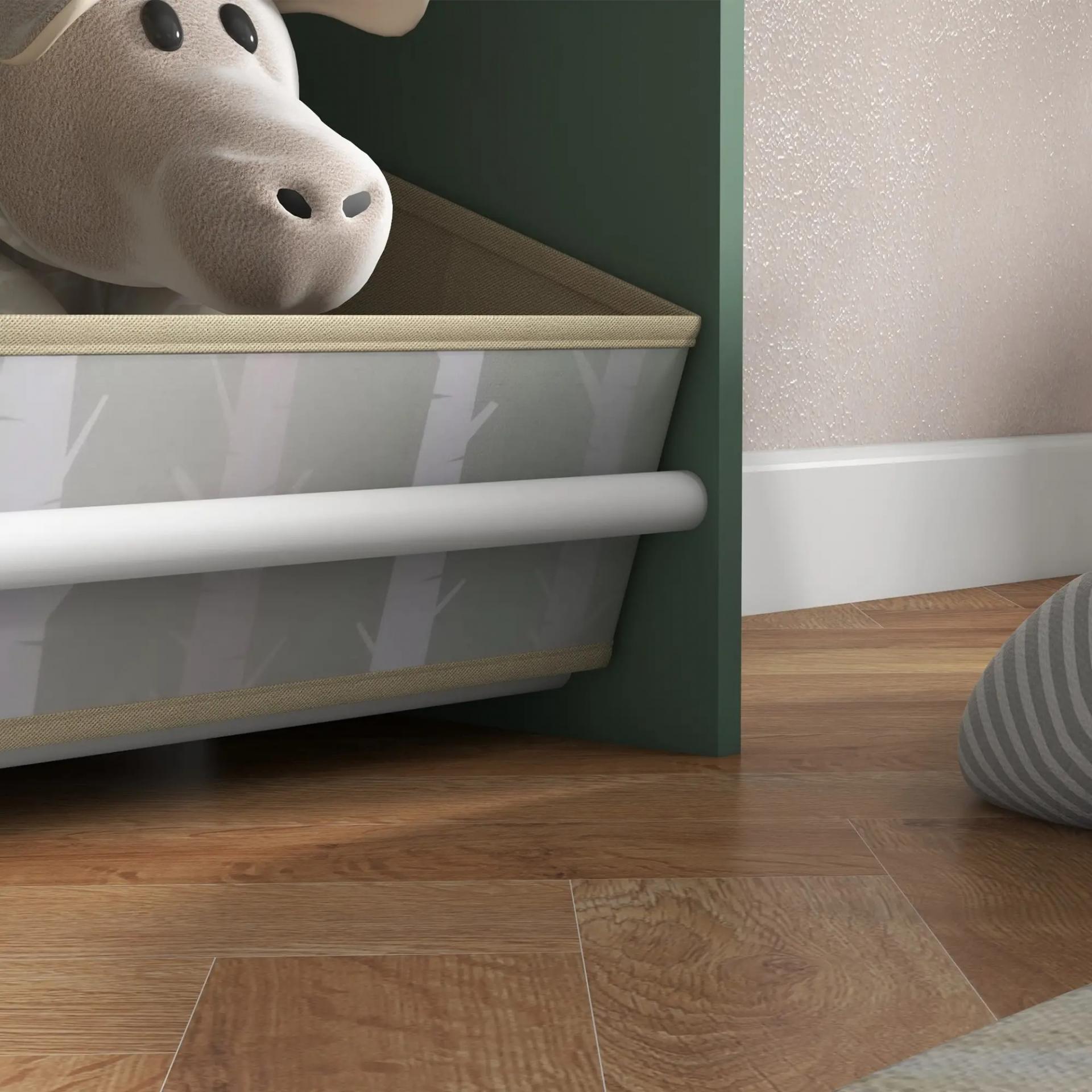 - BONITO DISEÑO CON ESTAMPADO DE ANIMALES: Este organizador de juguetes conjunto de color verde y estampado multicolor con animales. Llamará la atención de los más pequeños a la vez que le dará un toque refinado y bonito a cualquier habitación infantil, sala de juego, ludoteca, etc. Y con pizarra, se puede pintar