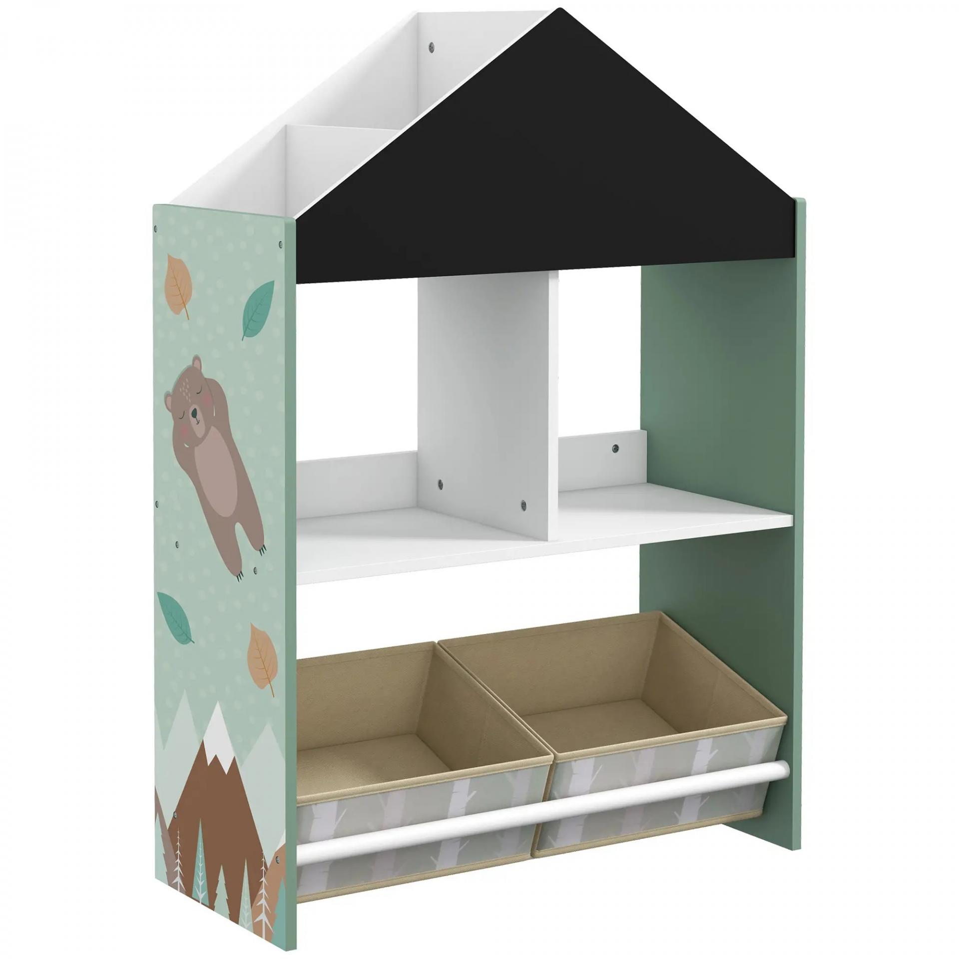 Organizador Infantil Estantería para Juguetes con Estantes Abiertos y 2 Cajas Extraíbles 62,4x26,5x90 cm Verde