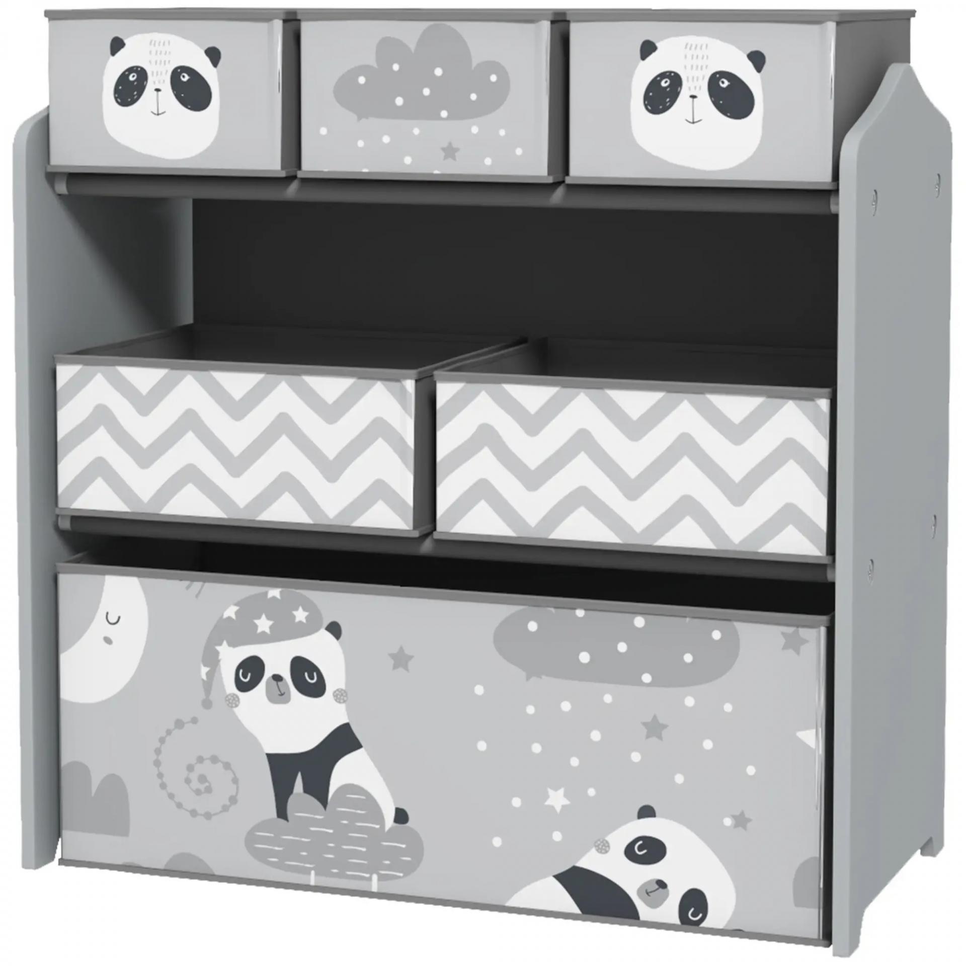 - BONITO DISEÑO CON ESTAMPADO DE PANDA: Organizador infantil de color gris y blanco con cestas con un bonito estampado con cenefas, nubes y pandas que llamará la atención de los más pequeños a la vez que le dará un toque refinado y bonito a cualquier habitación infantil, sala de juego, ludoteca, etc.
