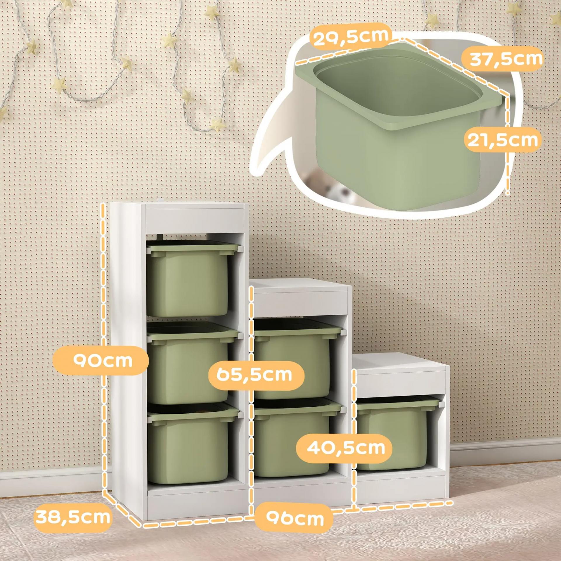 Mueble de almacenamiento para juguetes de niños con 6 contenedores extraíbles, 3 niveles de almacenamiento, 96 x 38,5 x 90, verde