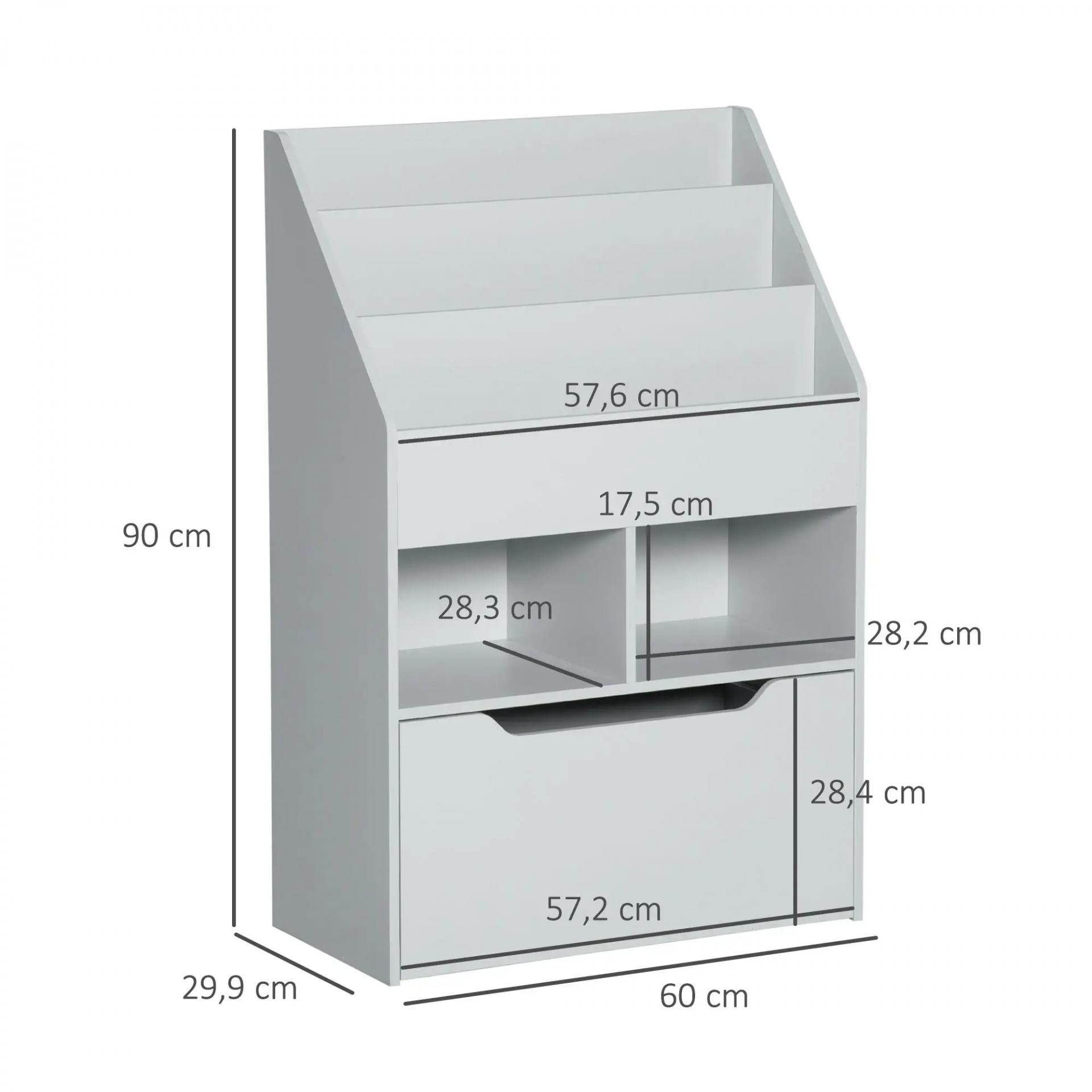 Estantería infantil con cajón estantería de libros con estantes 60x29,9x90 cm Gris