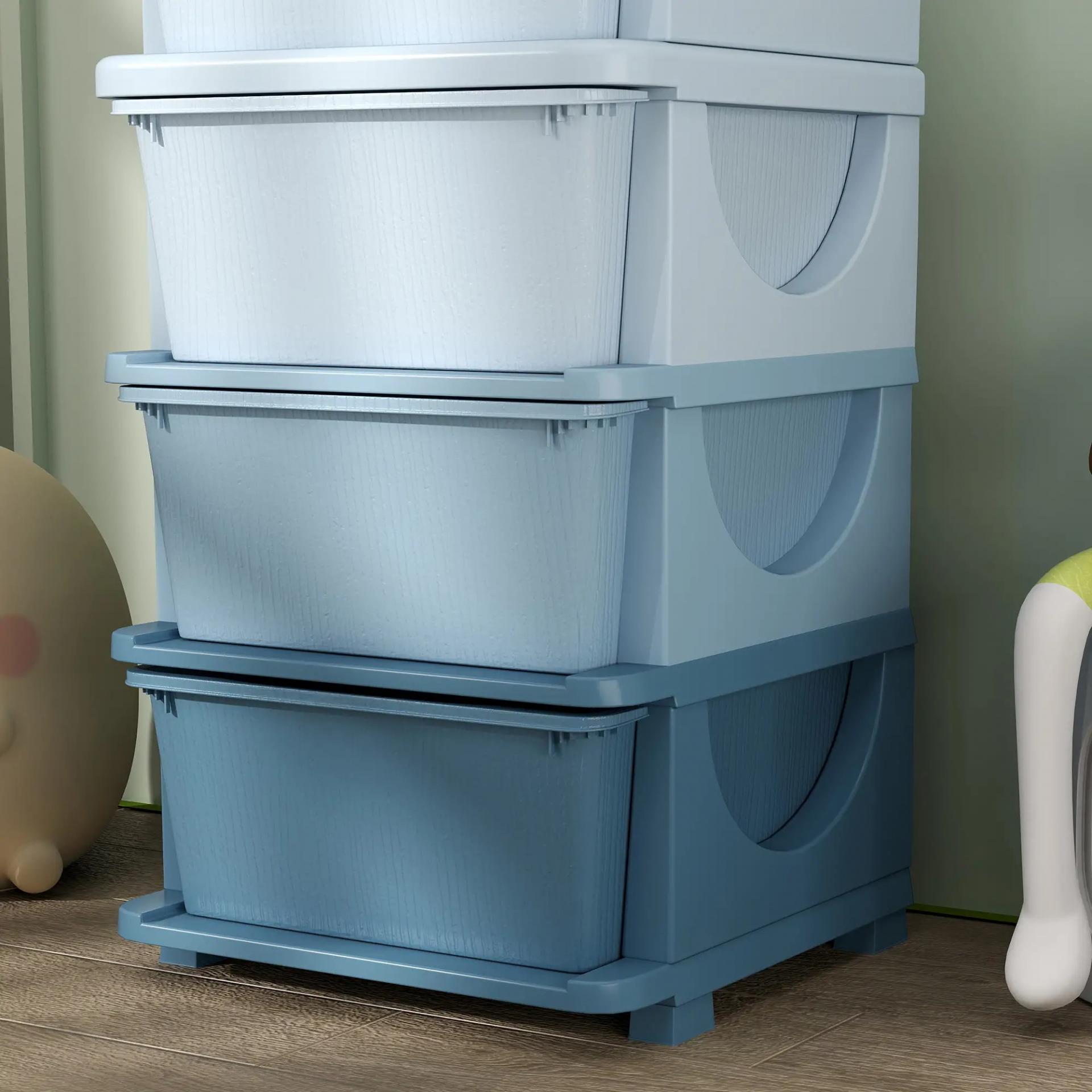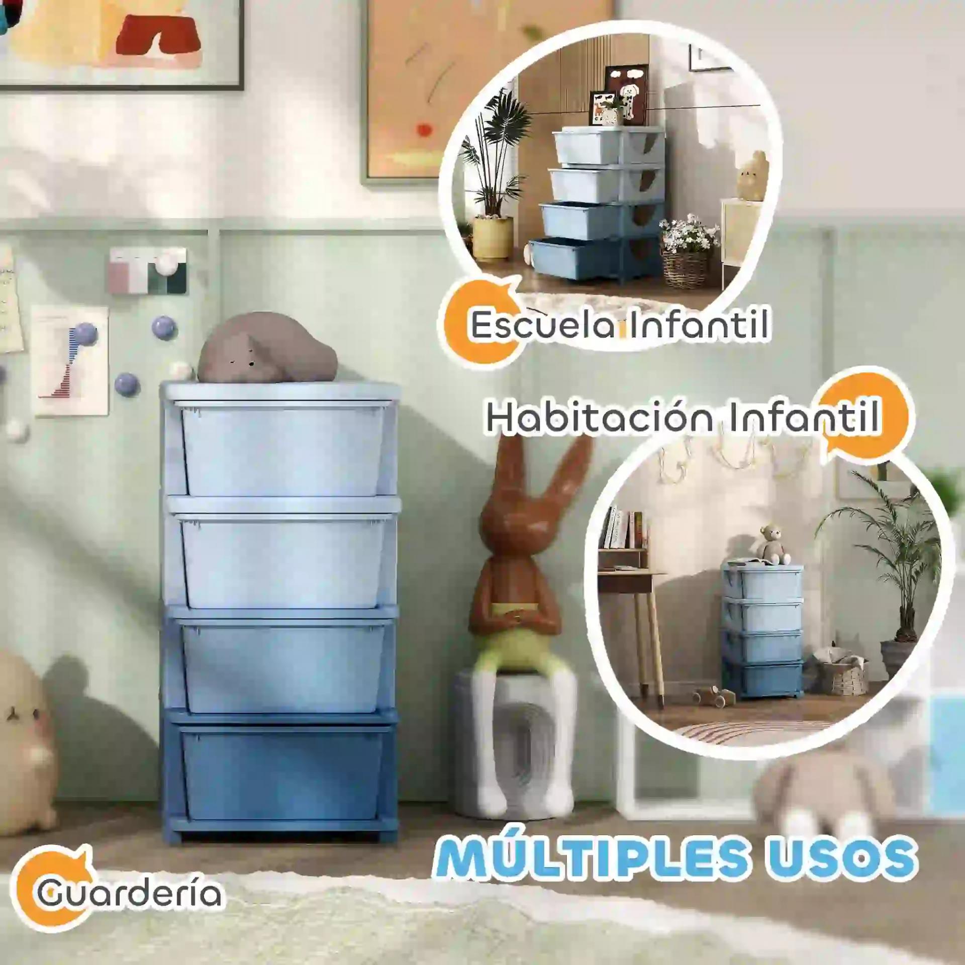 Torre de Almacenamiento Infantil con 4 Cajones para Niños de +3 Años con Bordes Redondeados y Asas 37x37x76 cm Azul