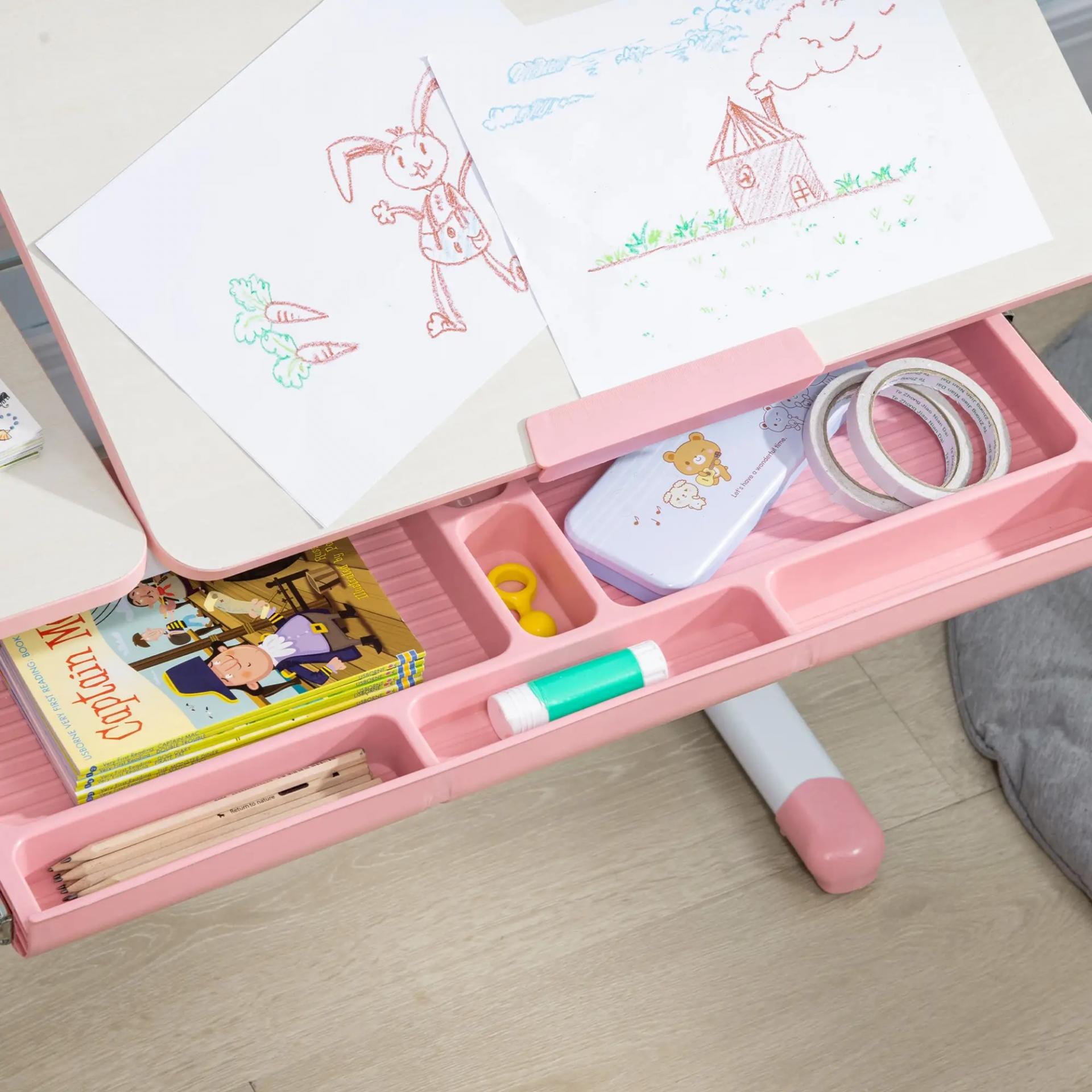 Pupitre Infantil Altura Ajustable con 1 Cajón 1 Estante y Tablero de Mesa Inclinable 80x52x88-109 cm Rosa y Blanco