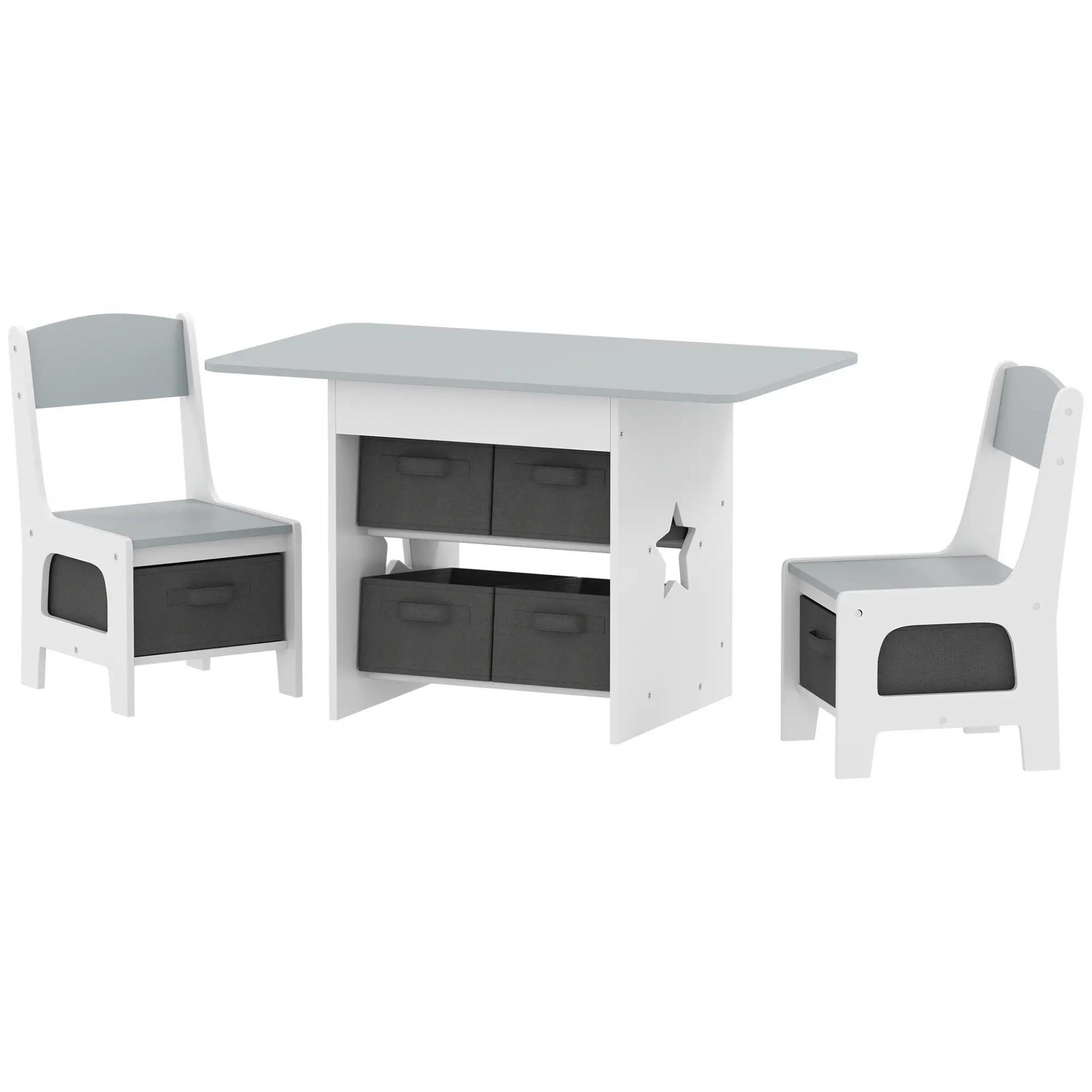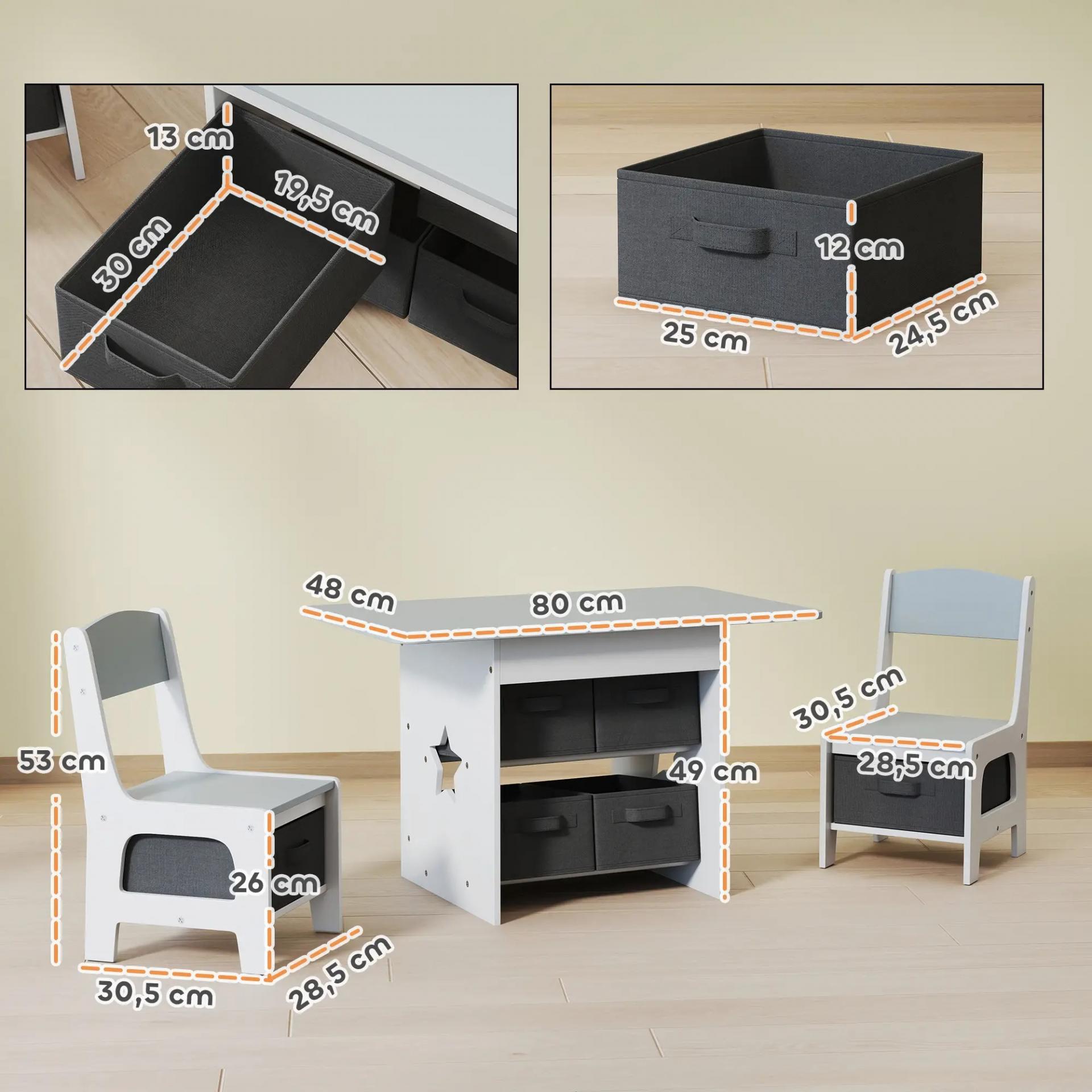 Mesa Infantil con 2 Sillas con 6 Cajones de Tela Diseño Estrellas para Niños y Niñas de 3-8 Años Gris Claro