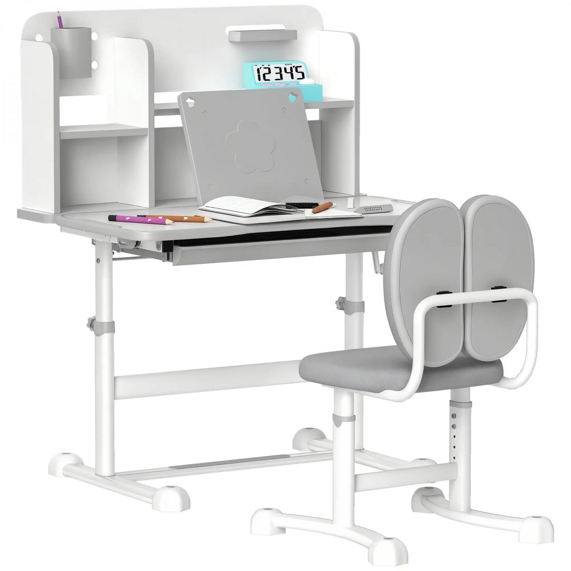 Juego de Escritorio y Silla para Niños de +3 Años Altura Ajustable con Tablero Inclinable 80x55x107,5 cm Gris