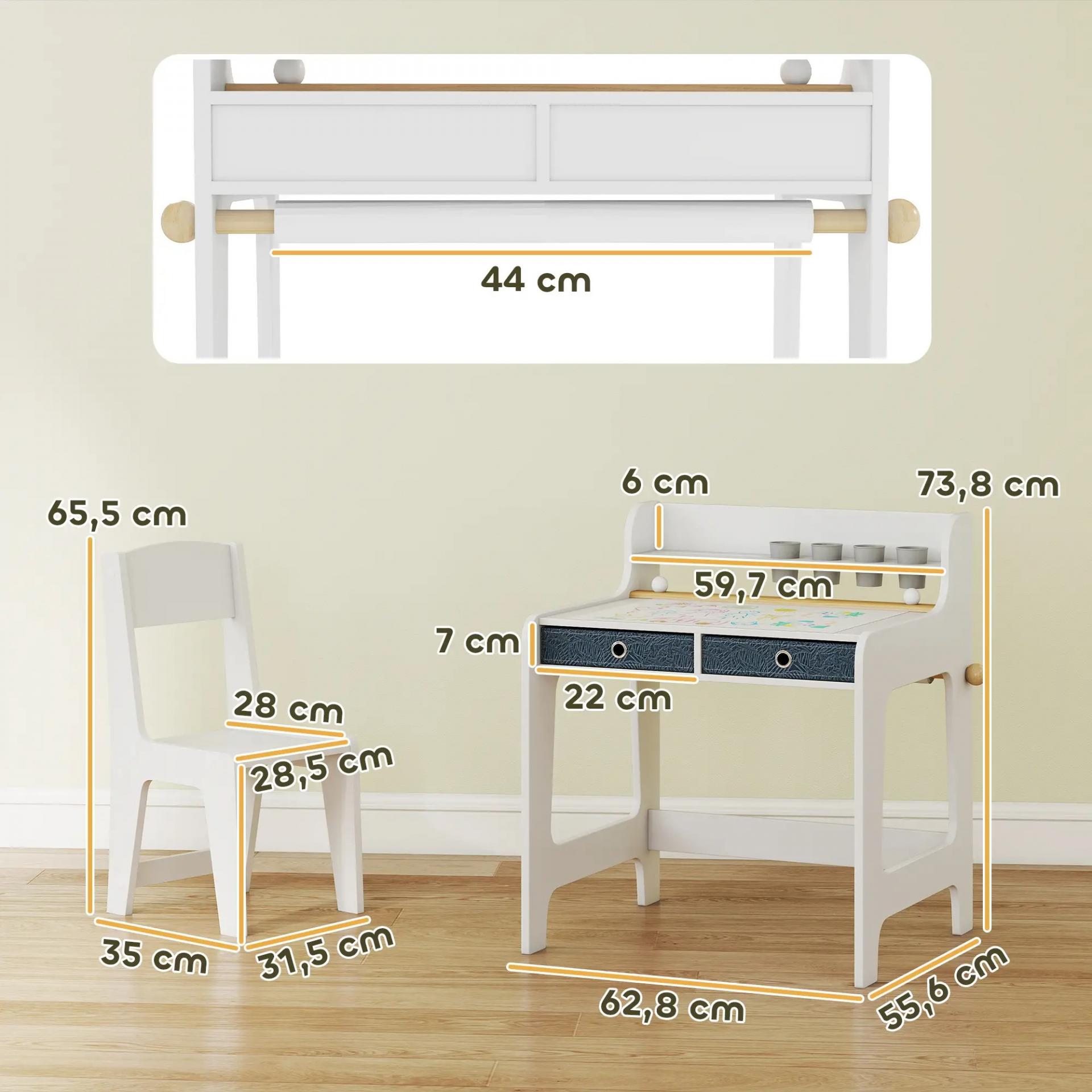 Escritorio Infantil con Silla Pupitre Infantil con 2 Cajones y Estante Mesa 62,8x55,6x73,8 cm y Silla 31,5x35x65,5 cm