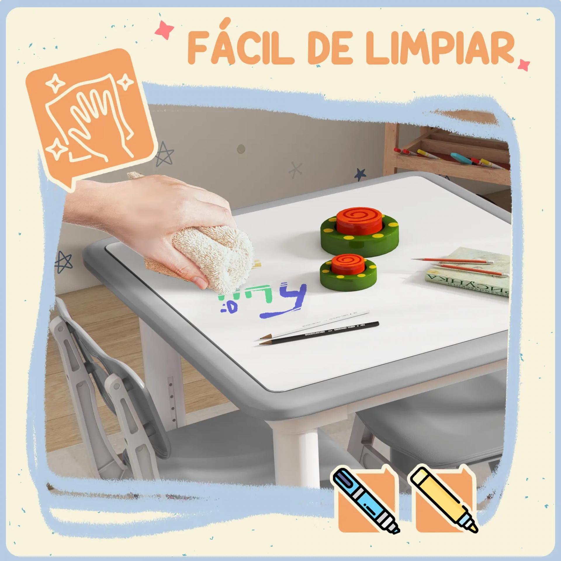 - FÁCIL DE LIMPIAR: La superficie lisa de la mesa y las sillas permite limpiarlas fácilmente, ideal para actividades artísticas con marcadores lavables sin preocuparte por las manchas