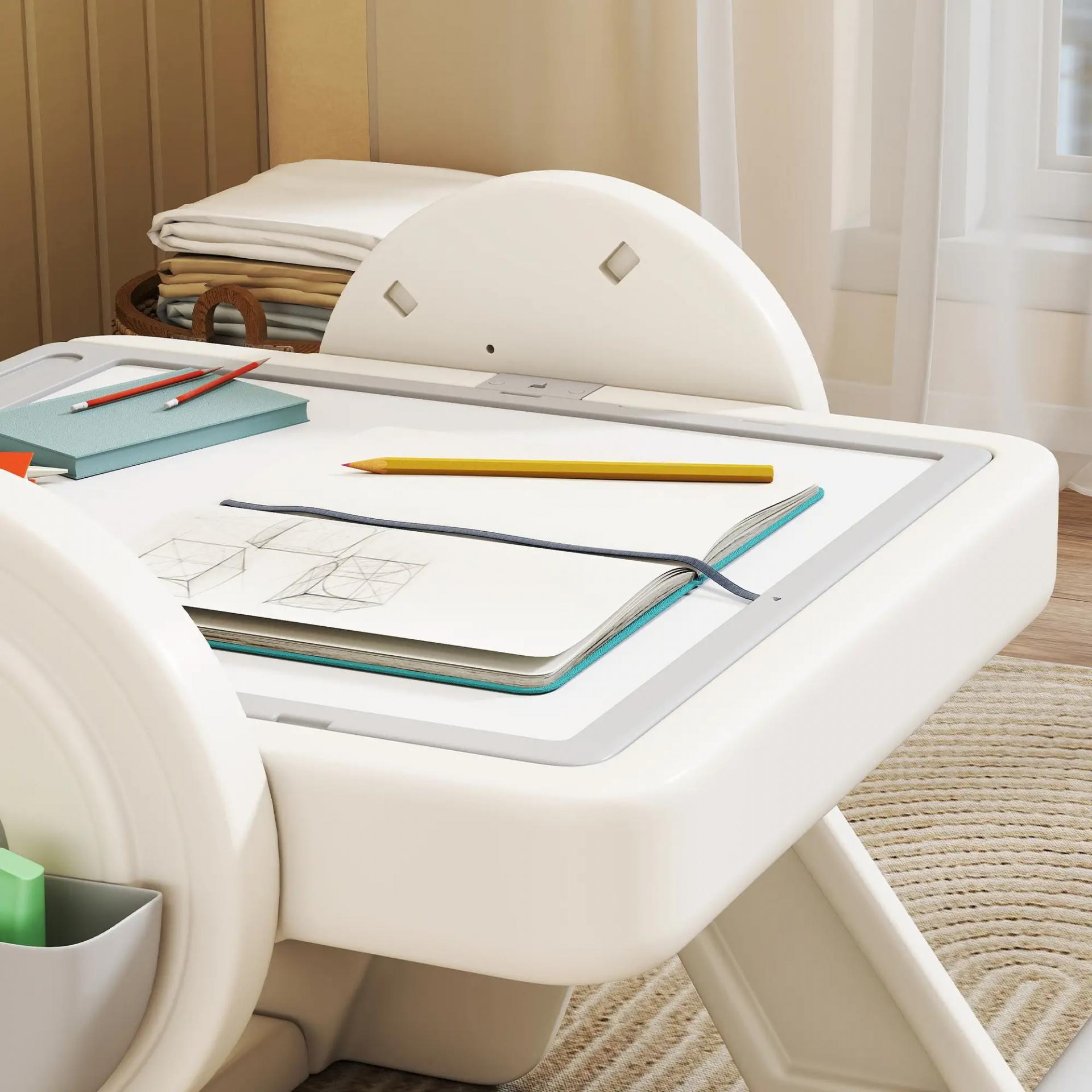 Mesa Multiuso para Niños con Estante Contenedor y Cajones, en HDPE y PP, Mesa Multiuso para Niños