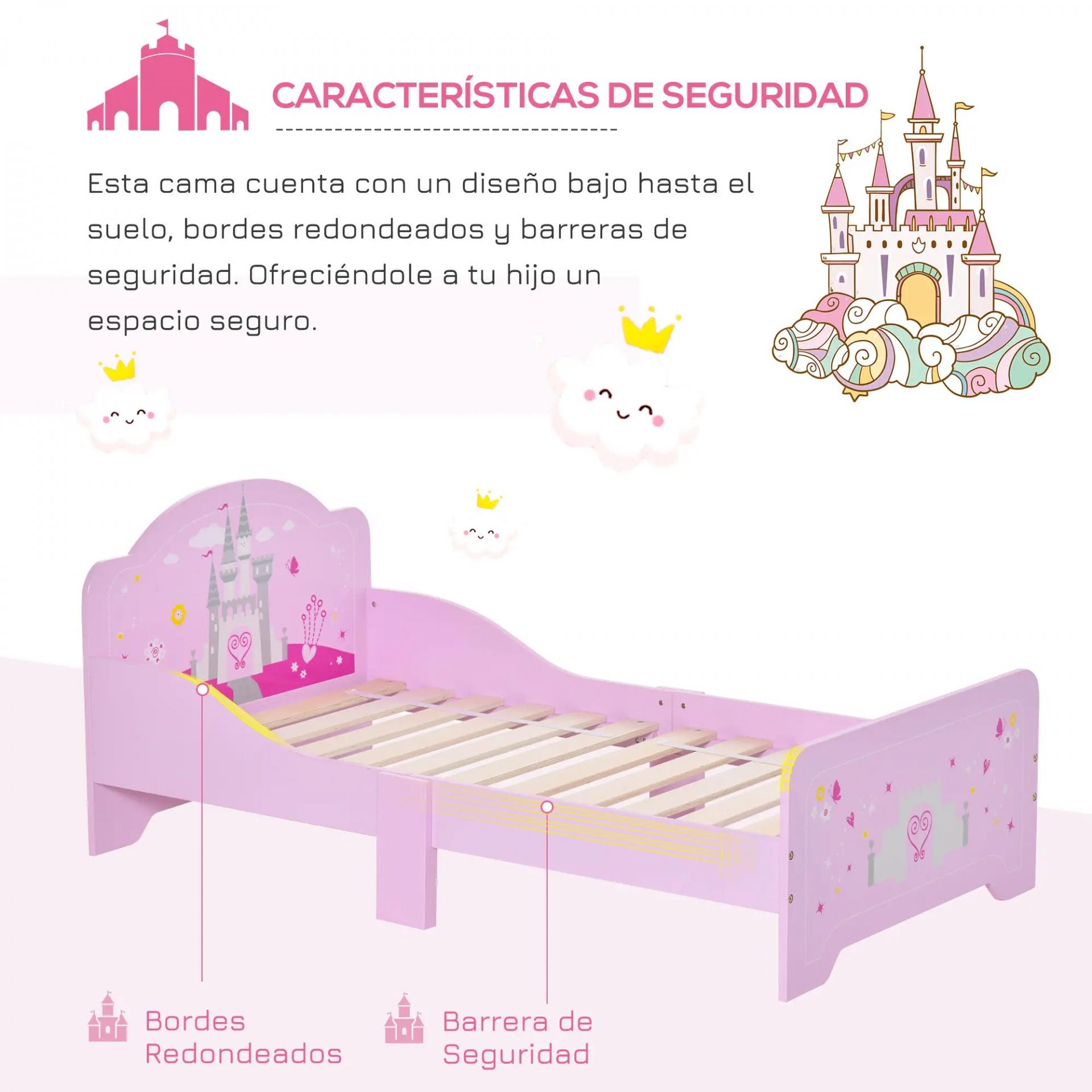 Cama Infantil para +3 Años Cama para Niños de Madera con Barreras de Protección Carga Máx. 50 kg 143x73x60 cm Rosa