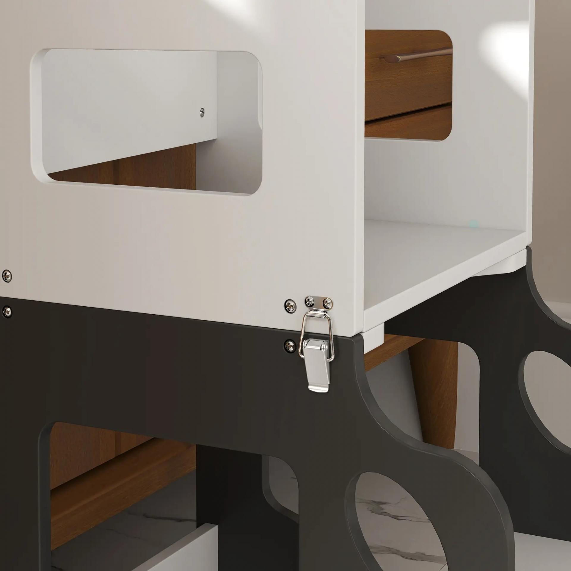 - RESISTENTE Y SEGURA: Esta torre de aprendizaje es fabricada en MDF y madera de pino, cuenta con una estructura trapezoidal estable. Su barandilla de seguridad y asas de fácil agarre garantizan que tu hijo explore con confianza y sin riesgos