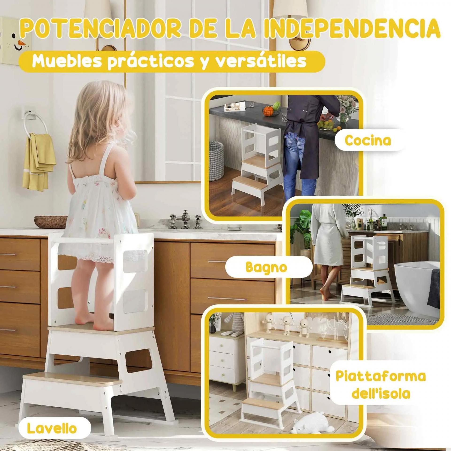 IMPULSA SU INDEPENDENCIA: Con esta torre de aprendizaje, tu pequeño podrá alcanzar la encimera para ayudarte a cocinar o lavarse los dientes sin ayuda. Más que un simple taburete, es una herramienta segura que fomenta su autonomía y confianza cada día