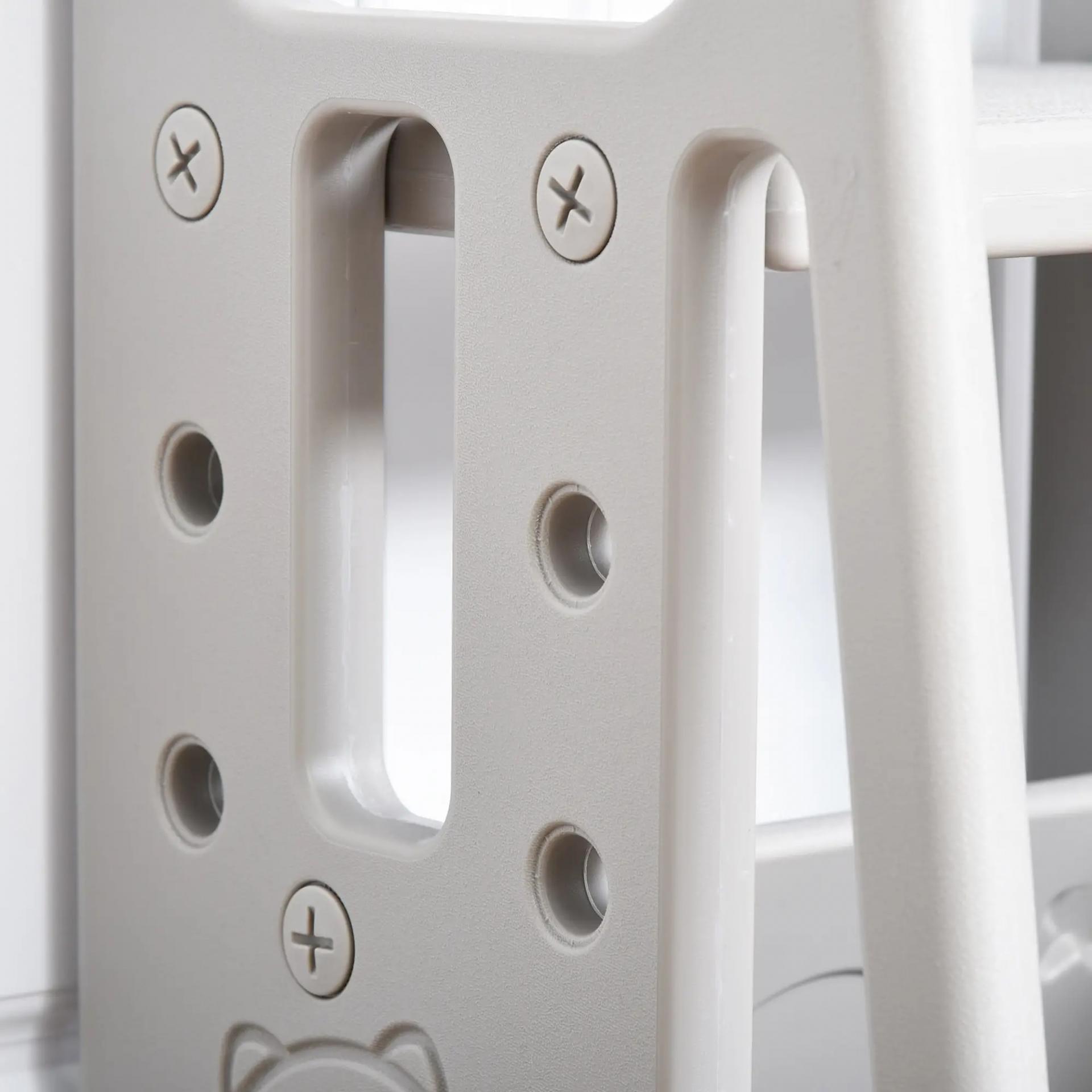 - MÁXIMA SEGURIDAD: Hecho de HDPE, este taburete evolutivo para niños es inodoro y no tóxico. Su estructura trapezoidal mejora su estabilidad y equilibrio. Y las barandillas y pasamanos ofrecen un apoyo fuerte y seguro cuando se usa