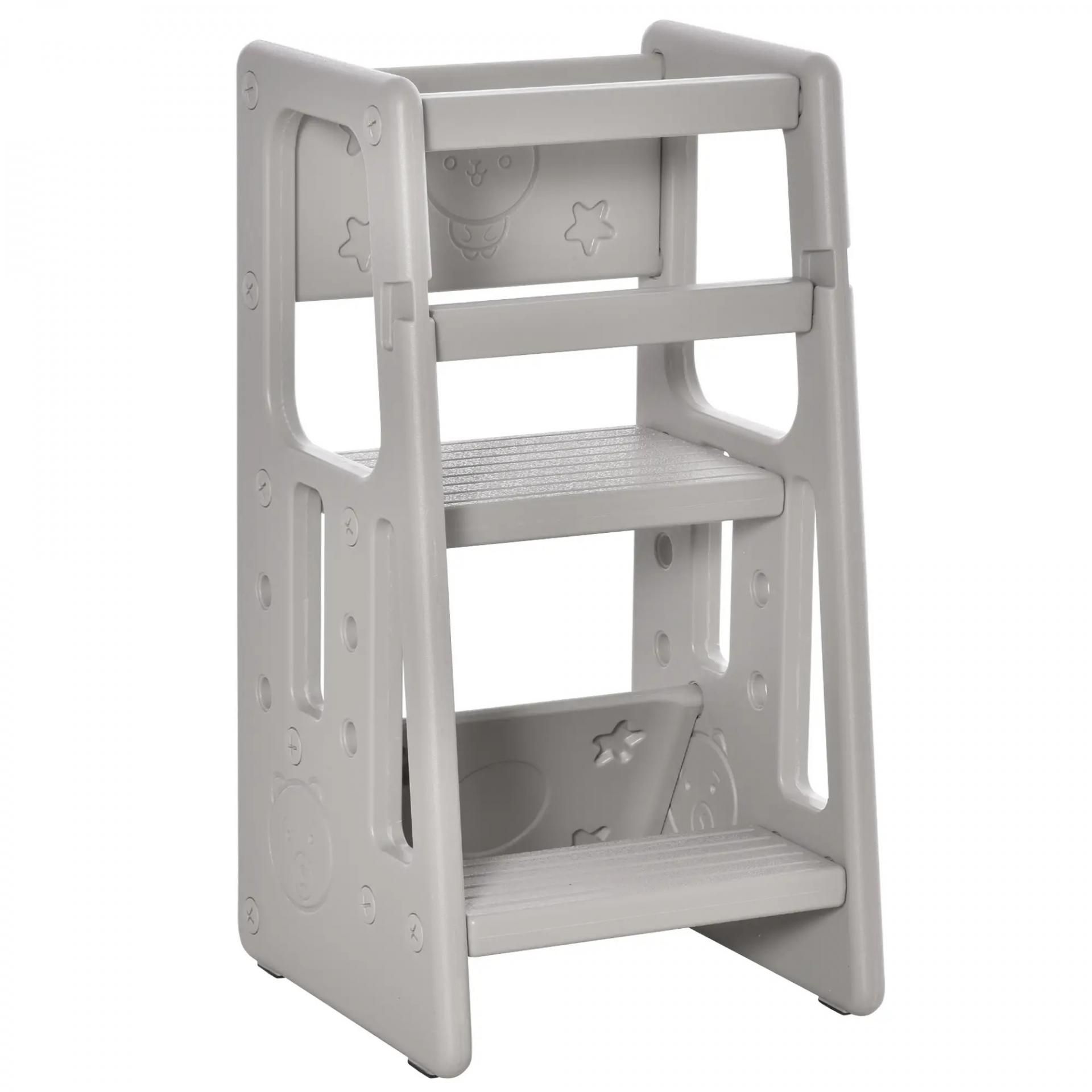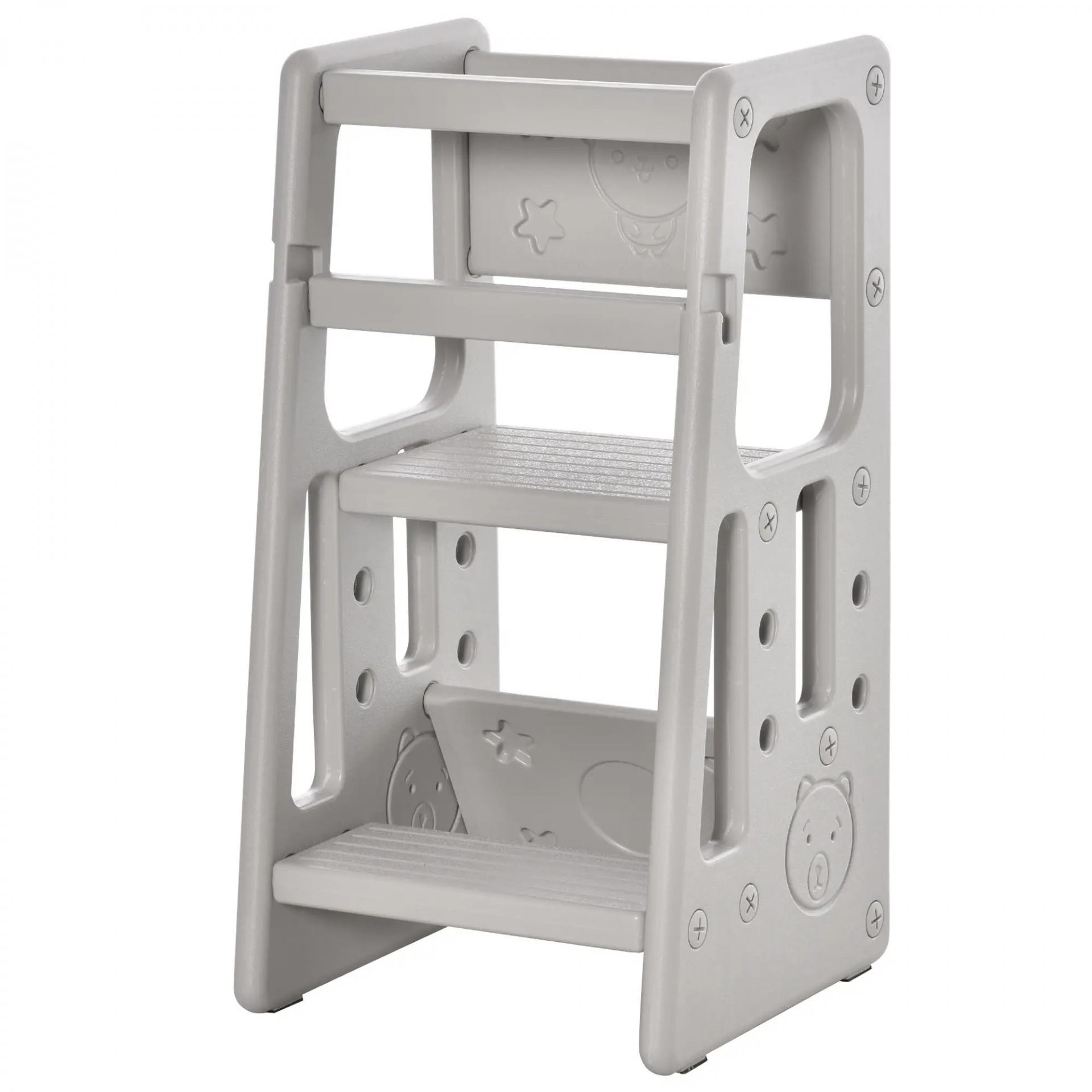 Torre de Aprendizaje para Niños Taburete Infantil con Altura Ajustable en 3 Posiciones para Cocina Baño 47x47x90 cm Gris