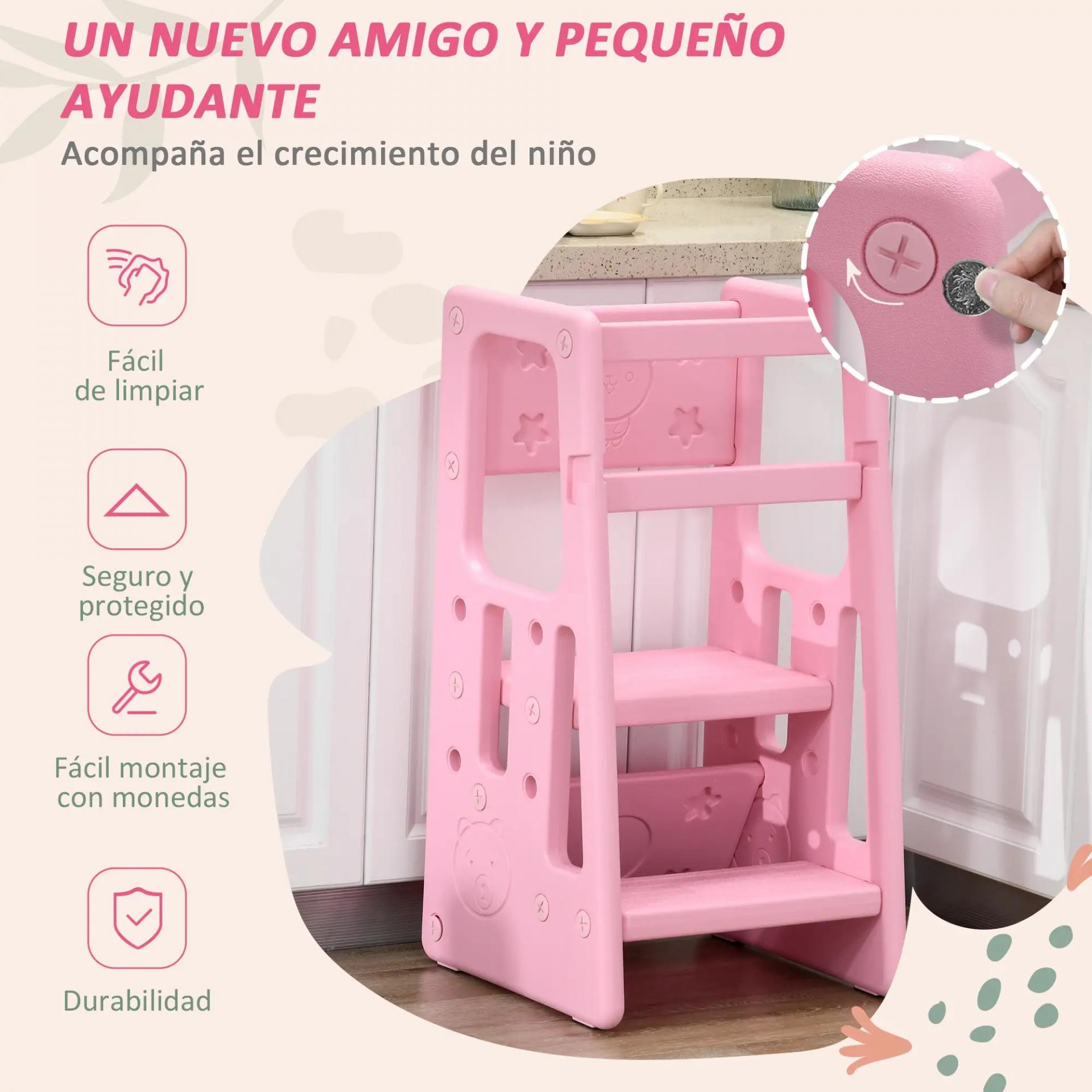 Torre de Aprendizaje para Niños Taburete Infantil con Altura Ajustable en 3 Posiciones para Cocina Baño 47x47x90 cm Rosa