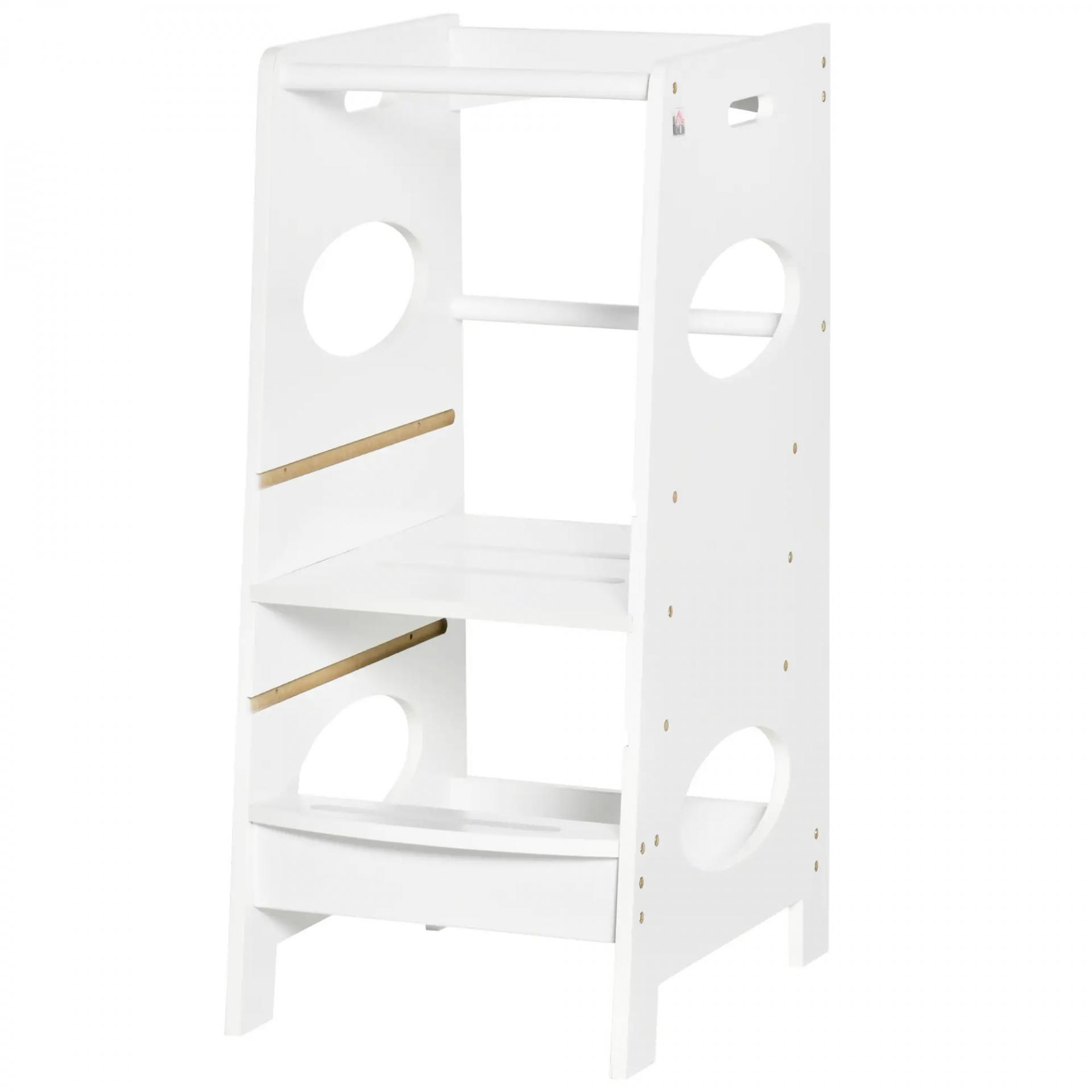 ALTURA AJUSTABLE: Torre aprendizaje madera gracias a su peldaño superior ajustable en 3 posiciones diferentes, para adaptar a la estatura de los pequeños. Proporciona un soporte seguro para los niños, ayudando a desarrollar su independencia