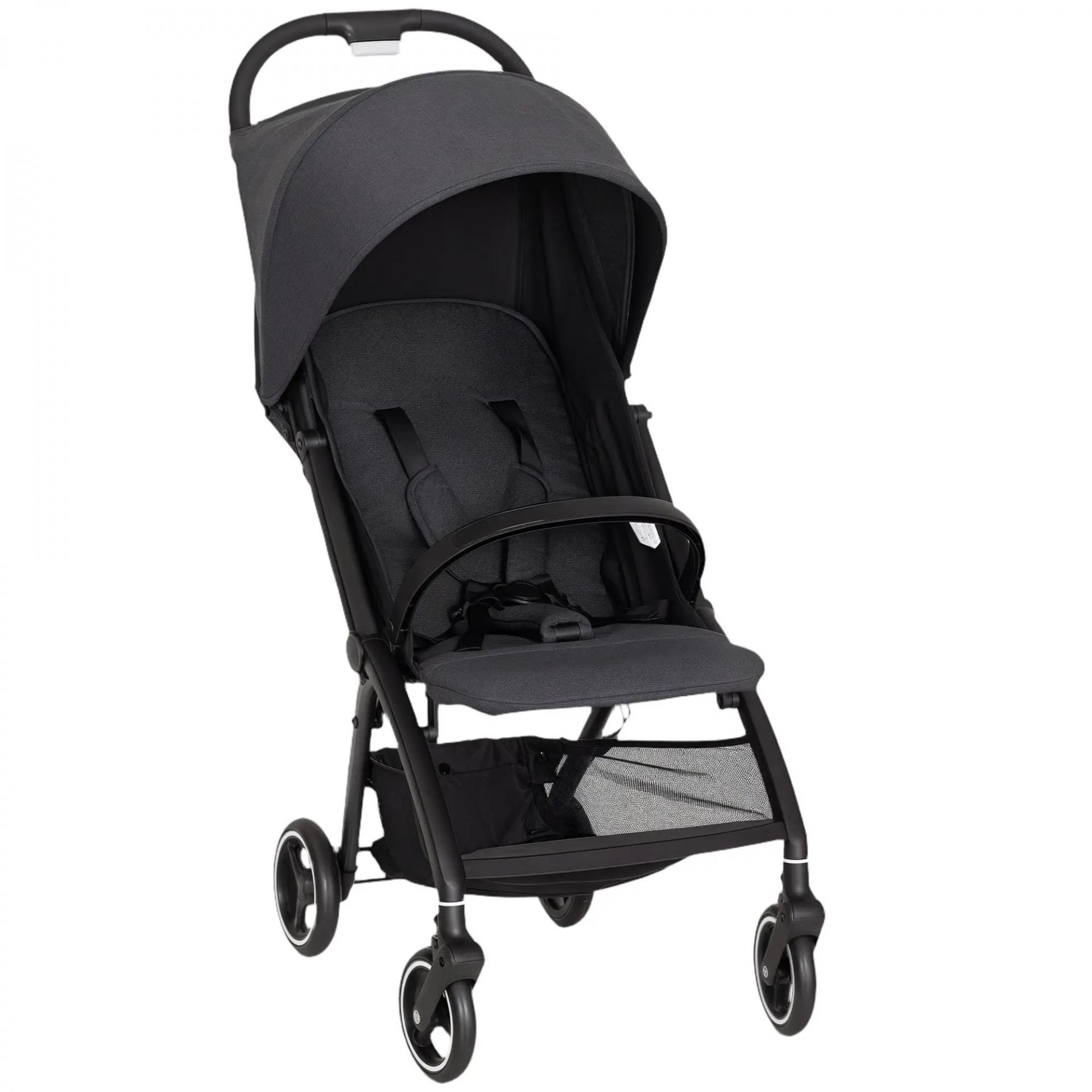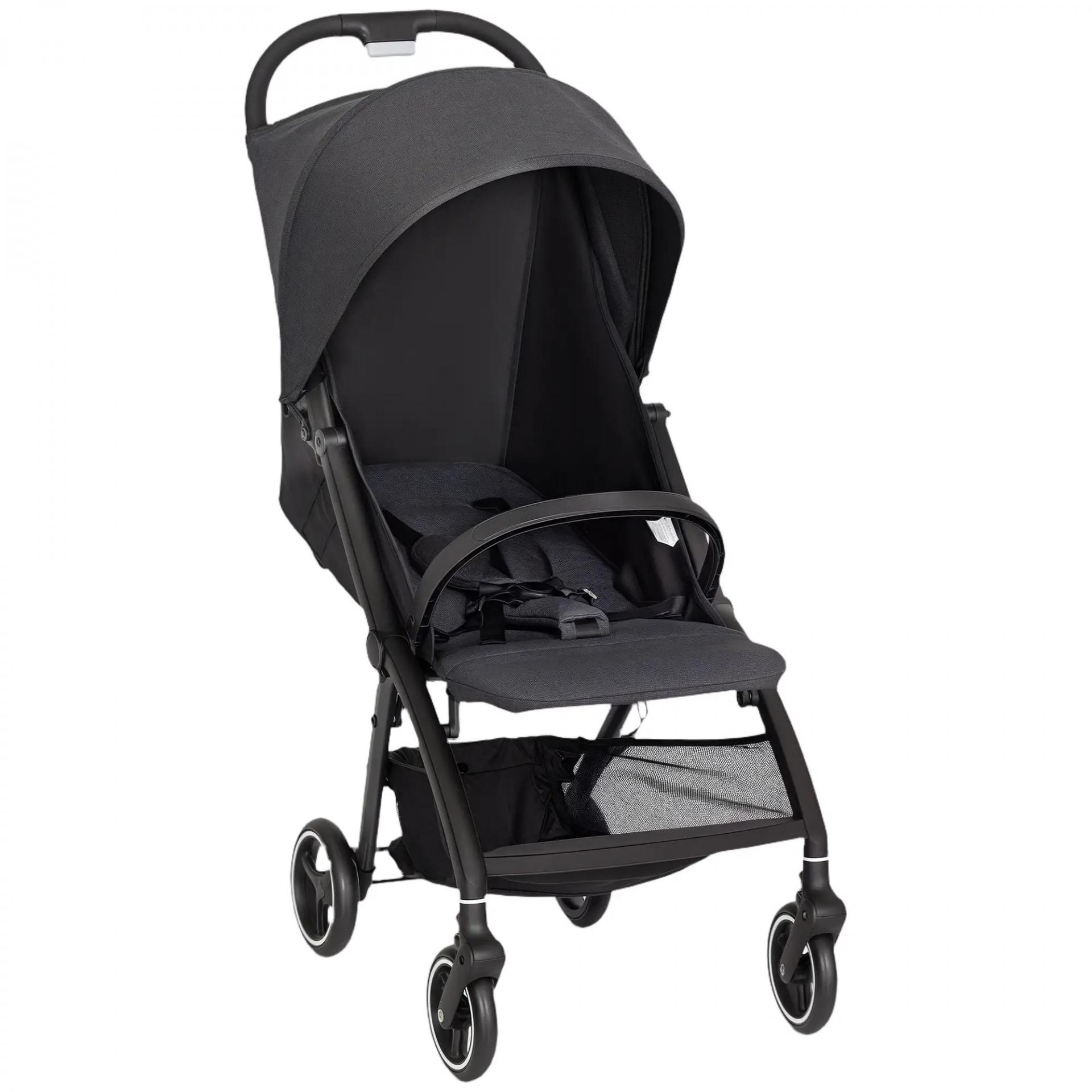Carrito para Bebé Plegable con Respaldo Reclinable Reposapiés Ajustable Capota Cesta Arnés Carga 15 kg Gris Oscuro