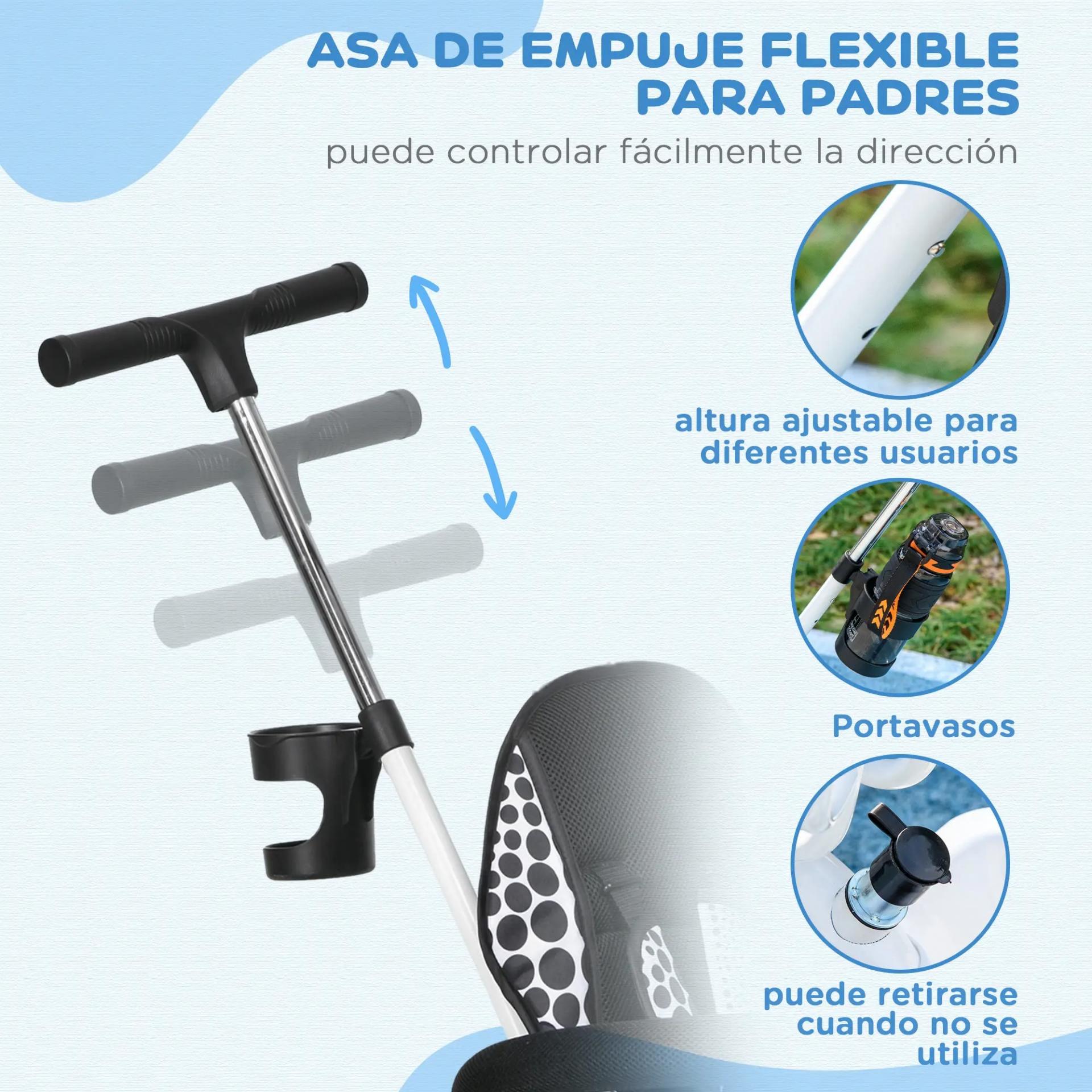 - RESISTENTE Y DURADERO: Con estructura metálica, asiento y respaldo acolchados para mayor confort. Incluye una práctica cesta inferior para guardar juguetes y otros objetos durante los paseos