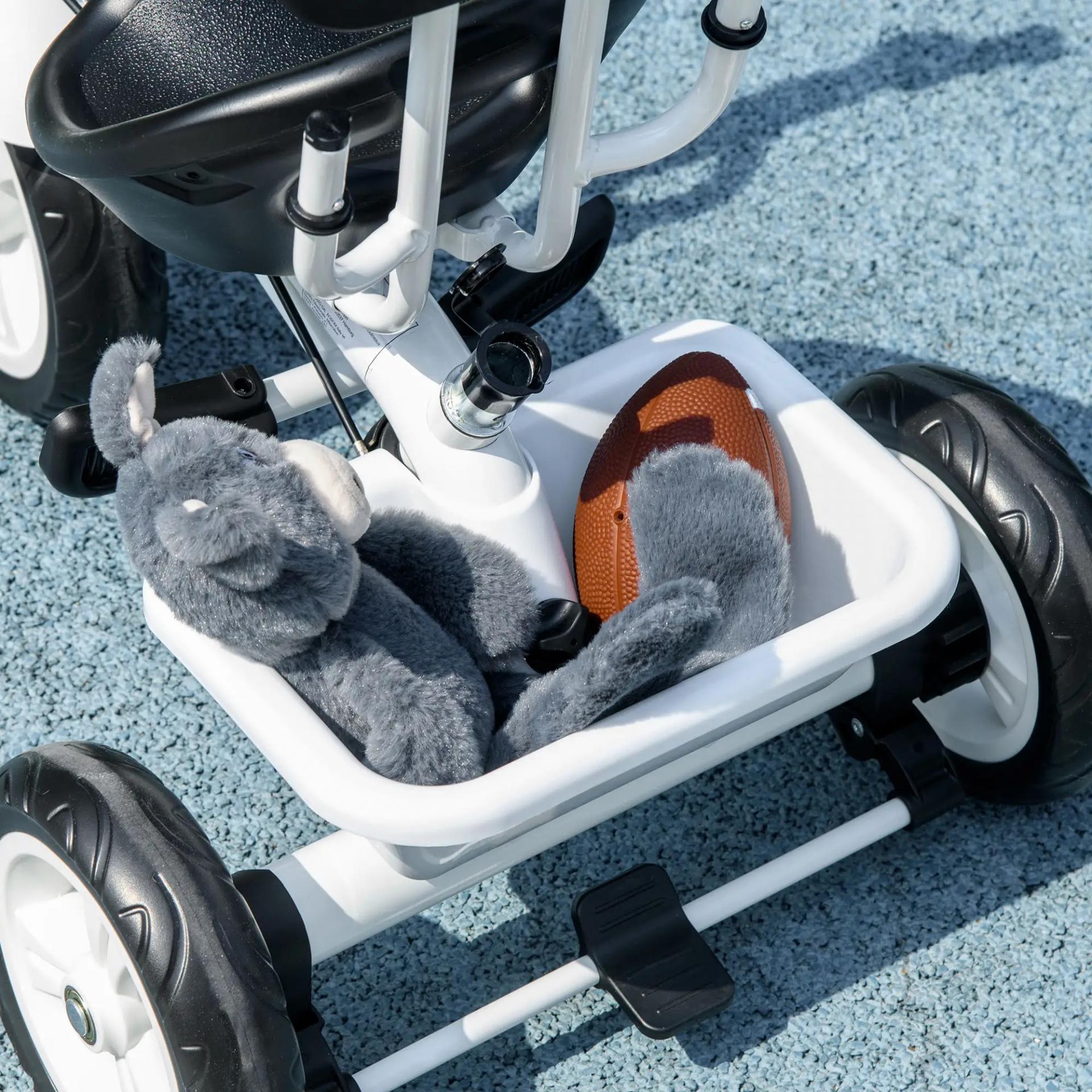 Triciclo para Bebés de +12 Meses con Toldo Plegable Mango de Empuje Telescópico y Desmontable y Portabotellas Blanco
