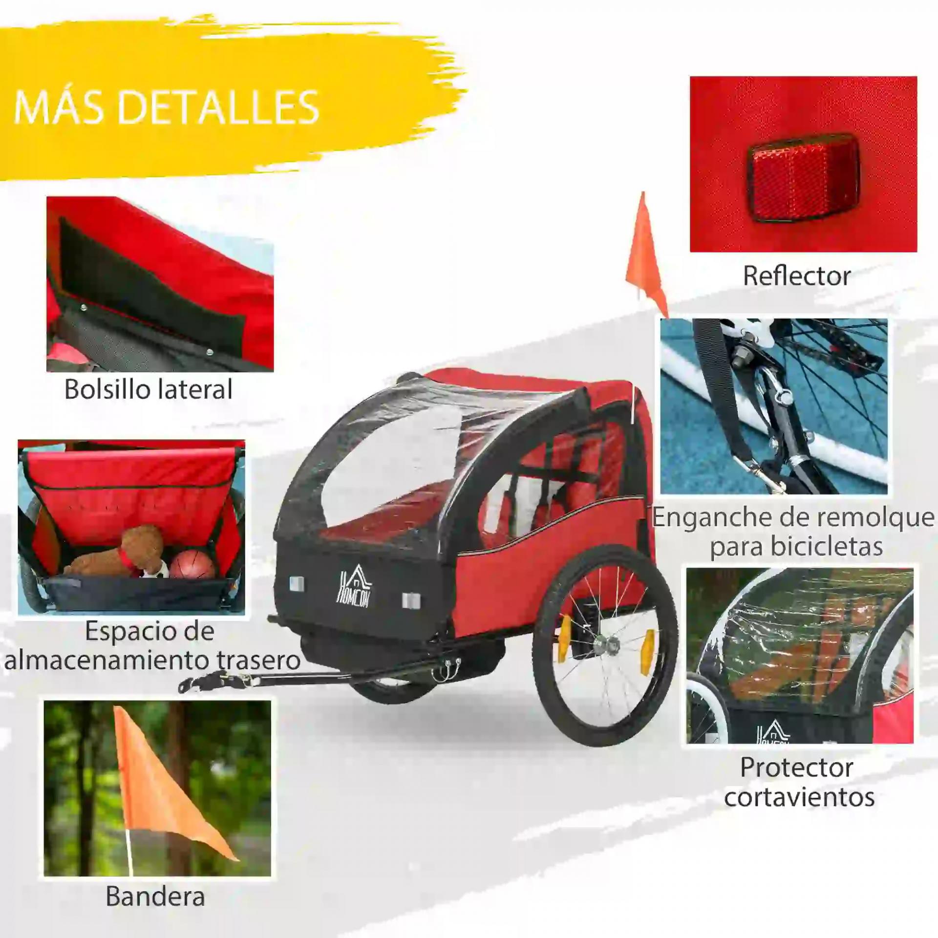 - SEGURO: Este remolque de bicicleta para niños cuenta con una bandera y reflectores para aumentar la visibilidad, y un cinturón de seguridad de cinco puntos para proteger a tus hijos durante el viaje