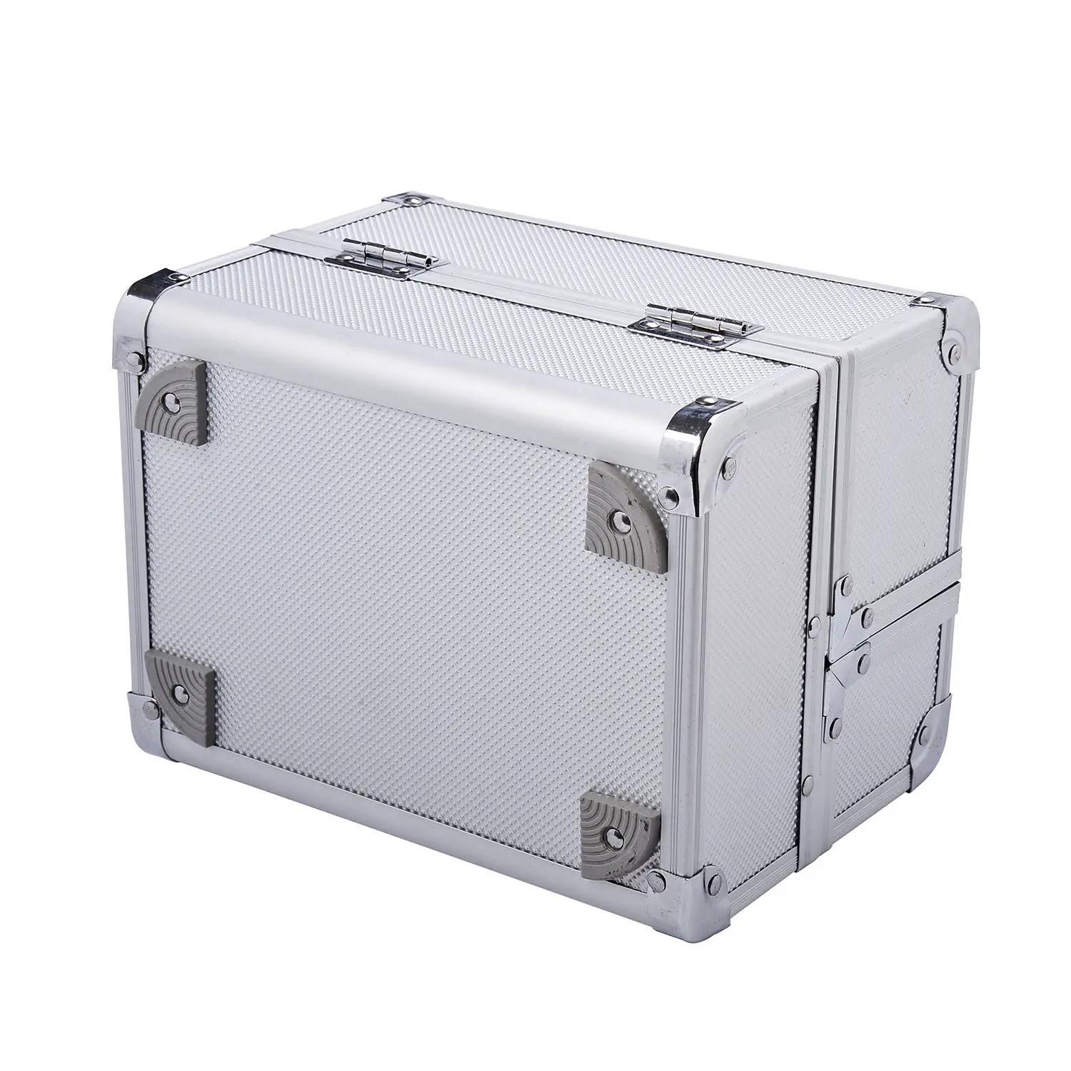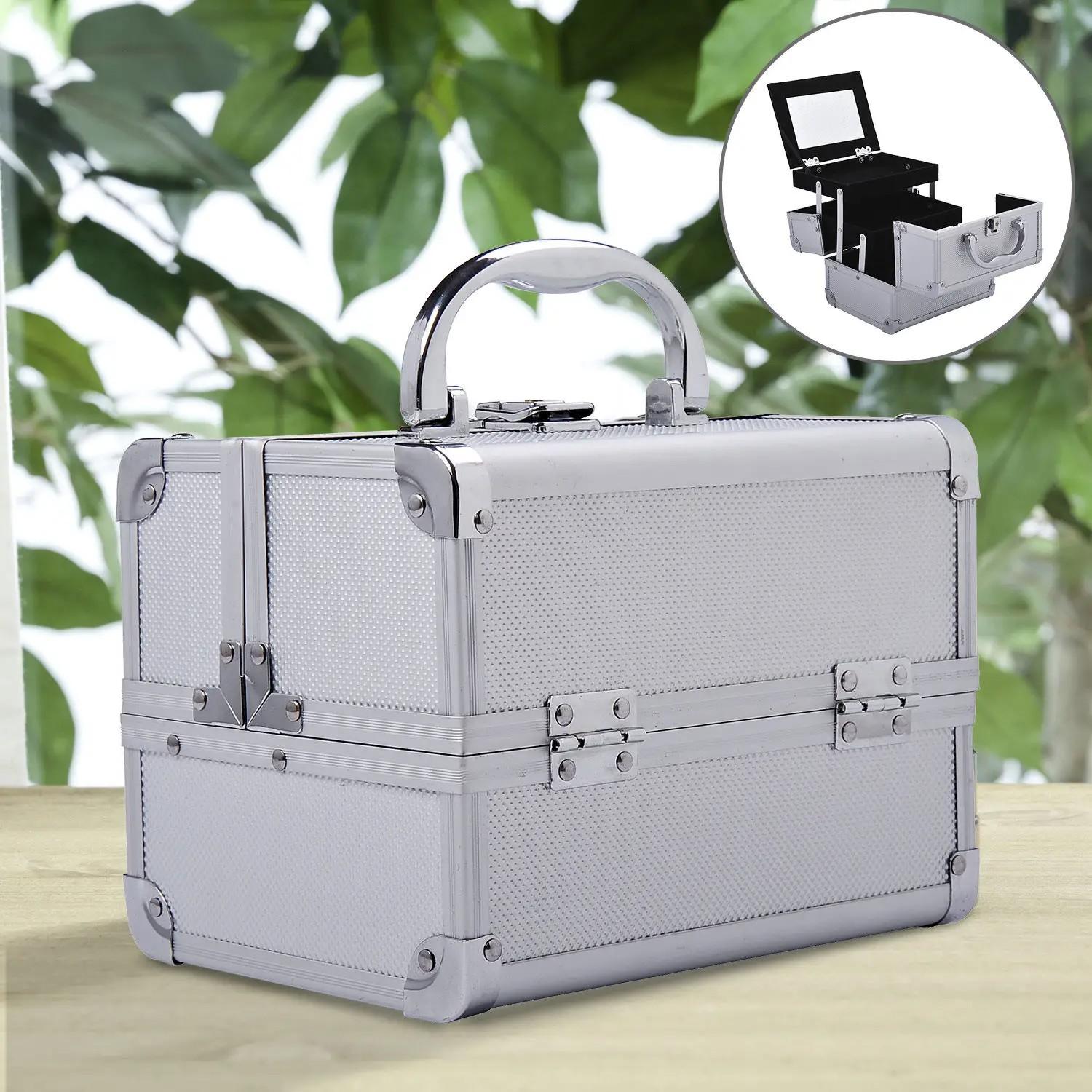 Maletín Maquillaje Profesional Estuche de Cosmético Portátil con Bandejas de 3 Niveles y Espejo 2 Llaves para Joyero Manicura Viaje 20x15x15 cm Plateado