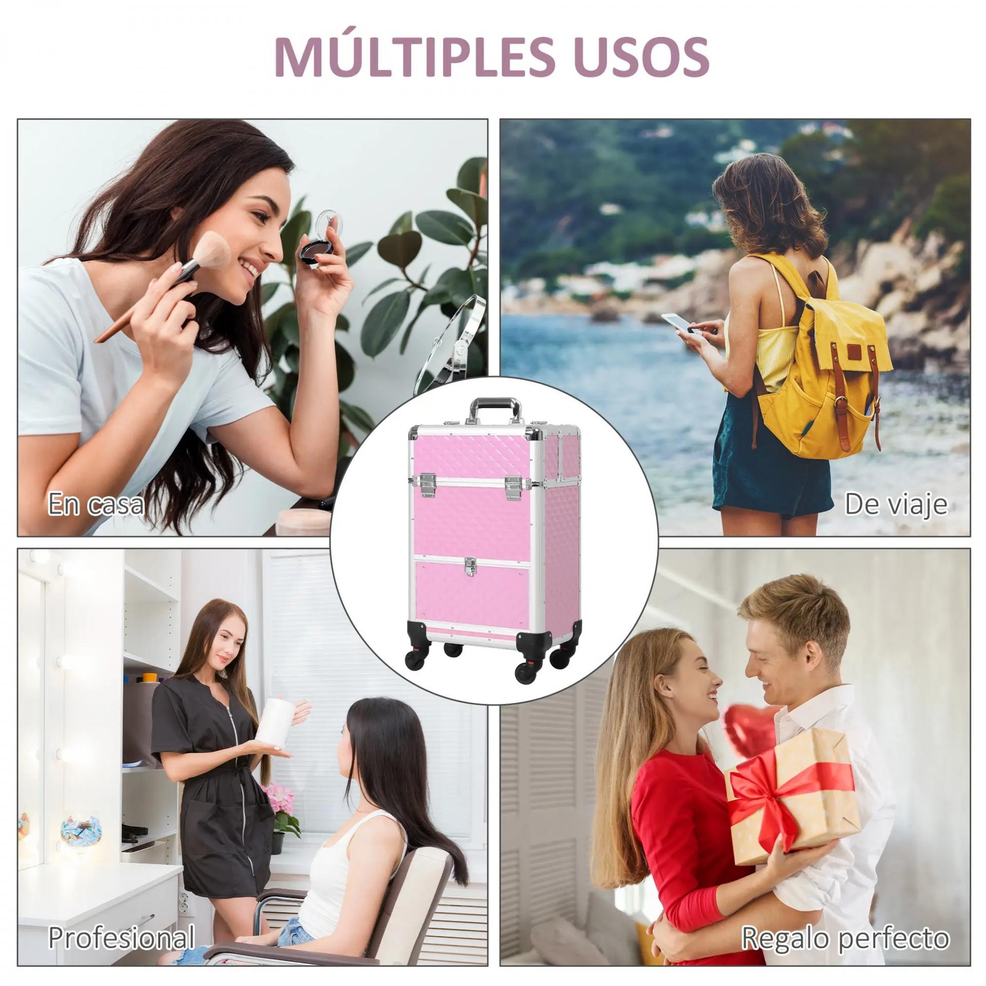 Maletín de Maquillaje Profesional con Cajón Maleta de Maquillaje con Ruedas para Viaje Trabajo 34x25x62 cm Rosa