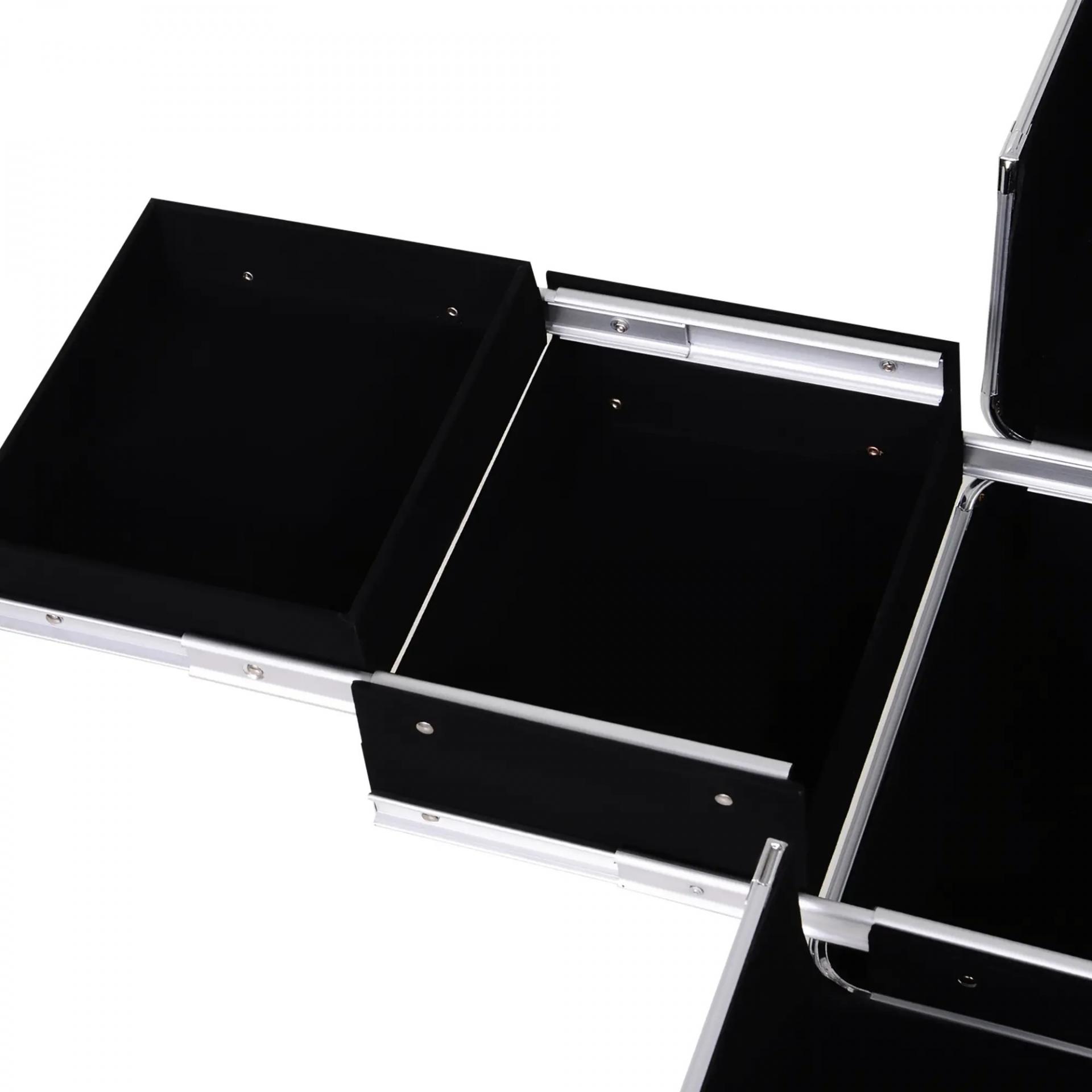 - ESTRUCTURA RESISTENTE: Fabricado con una estructura externa de aluminio, resistente a los golpes y daños y esquinas de acero reforzadas, este maletín de maquillaje es robusto e ideal para un uso prolongado. Además, los compartimentos tienen un agradable tejido de fieltro para amortiguar objetos y ayudar a que tus maquillajes se deslicen menos