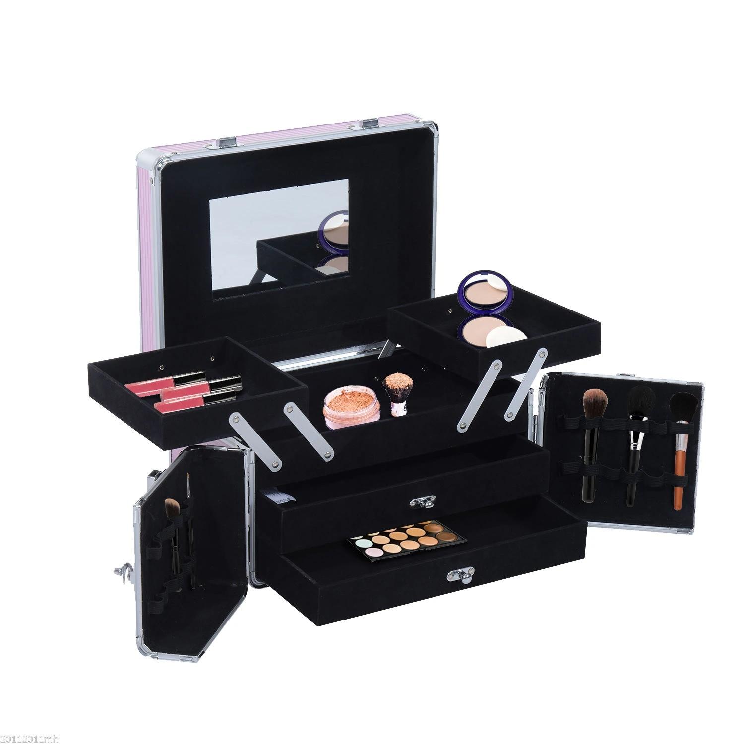 Maletín de Maquillaje Organizador Cosméticos Profesional Estuche para Maquillaje Caja de Belleza Portátil Varios Compartimientos 29x21x20cm Aluminio