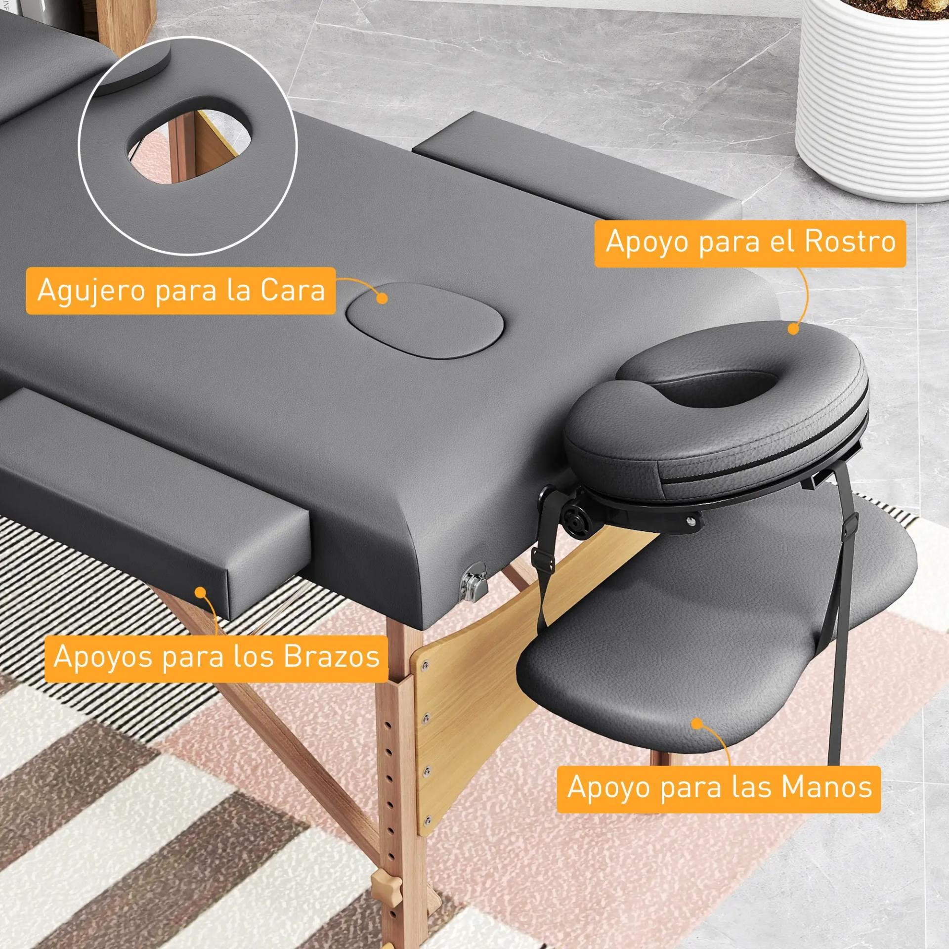 AJUSTE PERSONALIZADO: Altura ajustable 64–89 cm y respaldo reclinable 0–60°. Con superficie de 185x60 cm, reposacabezas y reposabrazos acolchados, esta camilla ofrece soporte y comodidad para masajes, belleza o faciales