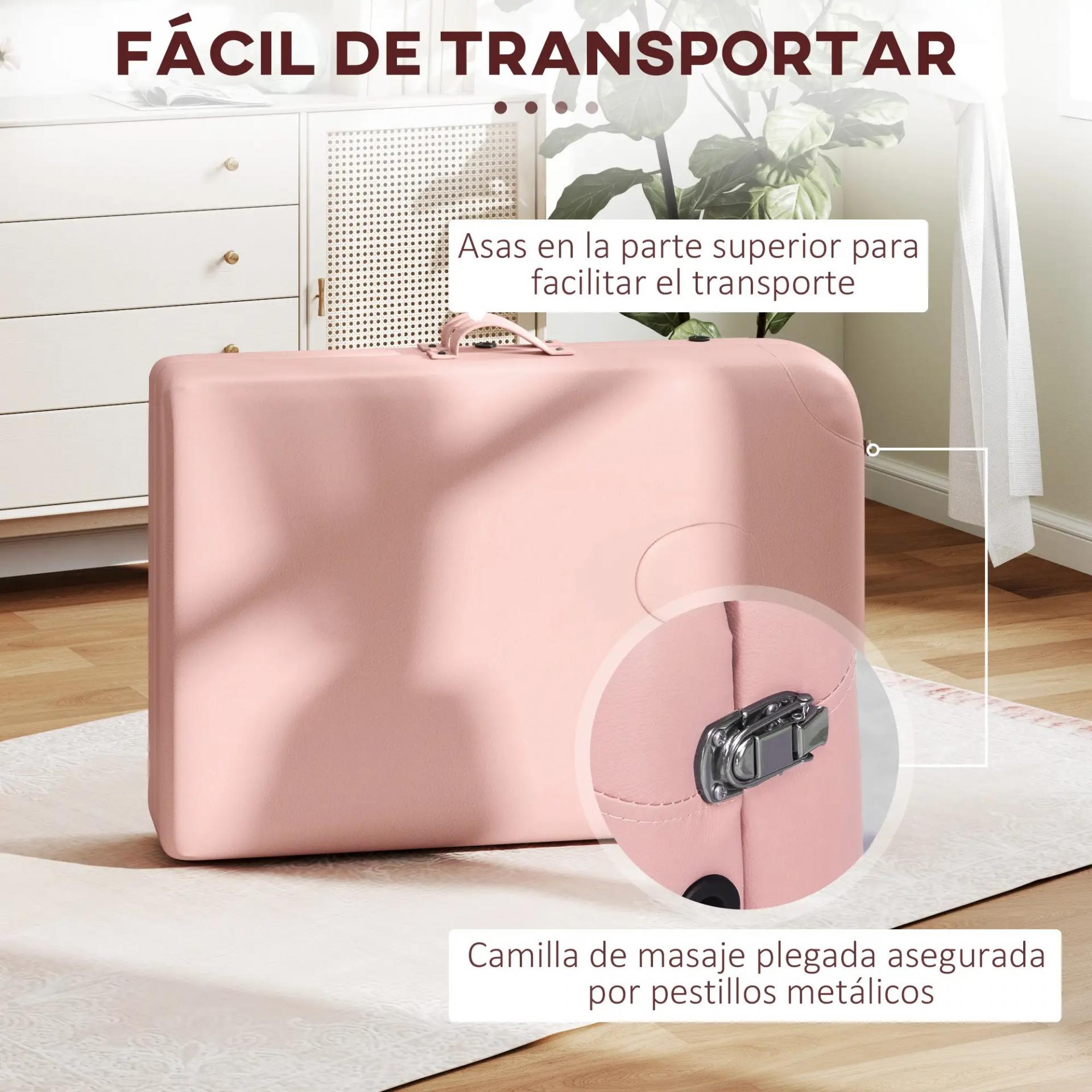 Camilla de Masaje Plegable con Reposacabezas Extraíble Asa Marco de Madera y Altura Regulable 210x81x67-92 cm Rosa
