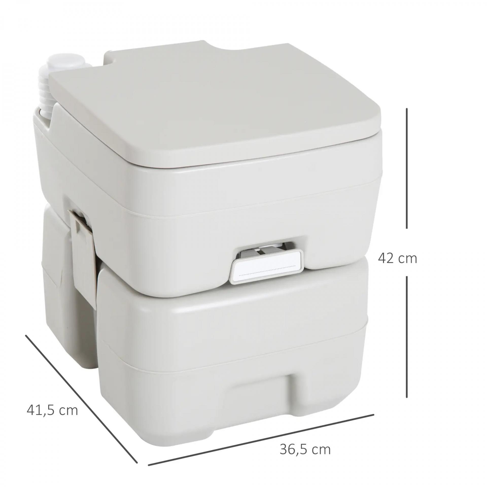 - MEDIDAS TOTALES: 41,5x36,5x42 cm (LxANxAL). Volumen del tanque de agua limpia: 10L. Volumen del tanque de aguas residuales: 20L. Medidas del asiento: 35x33,5x2,5 cm (LxANxAL). Capacidad máx. de carga: 147 kg