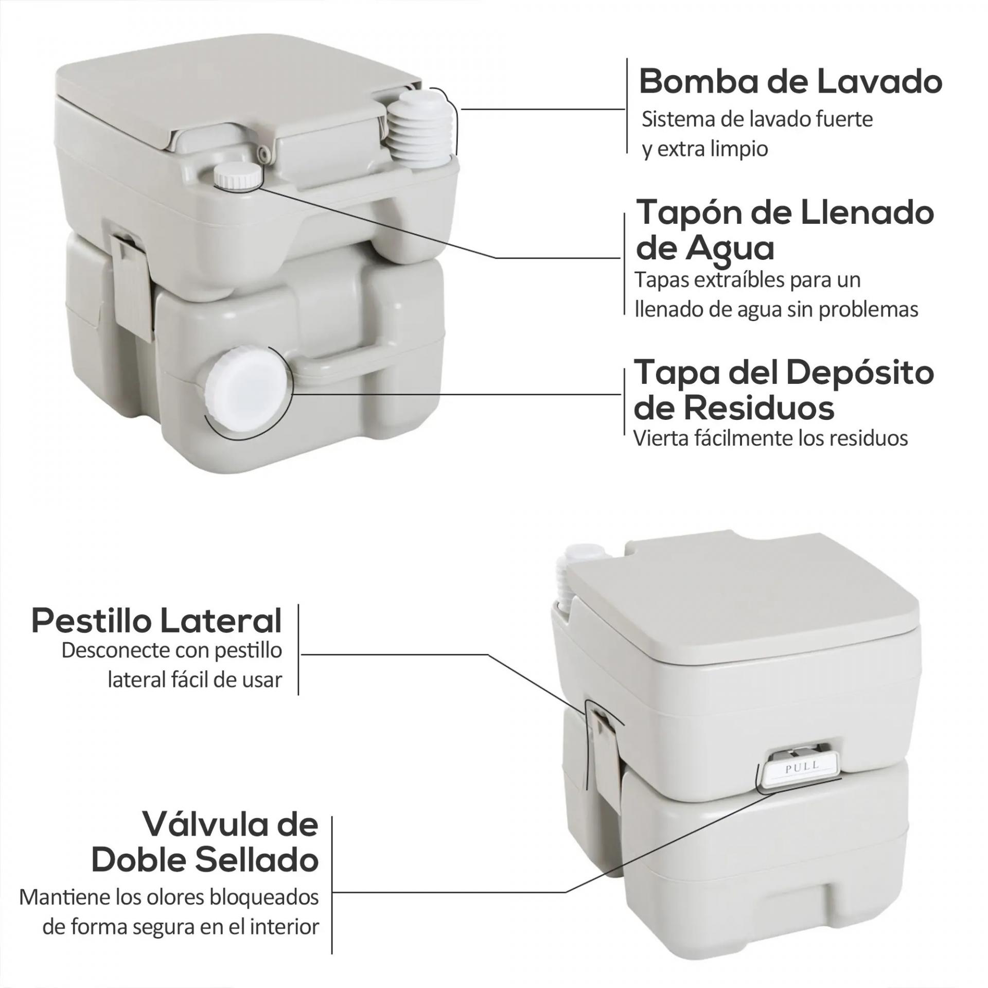 - DISEÑO INNOVADOR: Bomba reforzadora con un pistón manual, fácil de utilizar. El tanque de agua limpia tiene una boquilla tipo T, que es muy eficiente y ahorra agua. Tubo giratorio para descargar el depósito de las aguas residuales de un modo más higiénico