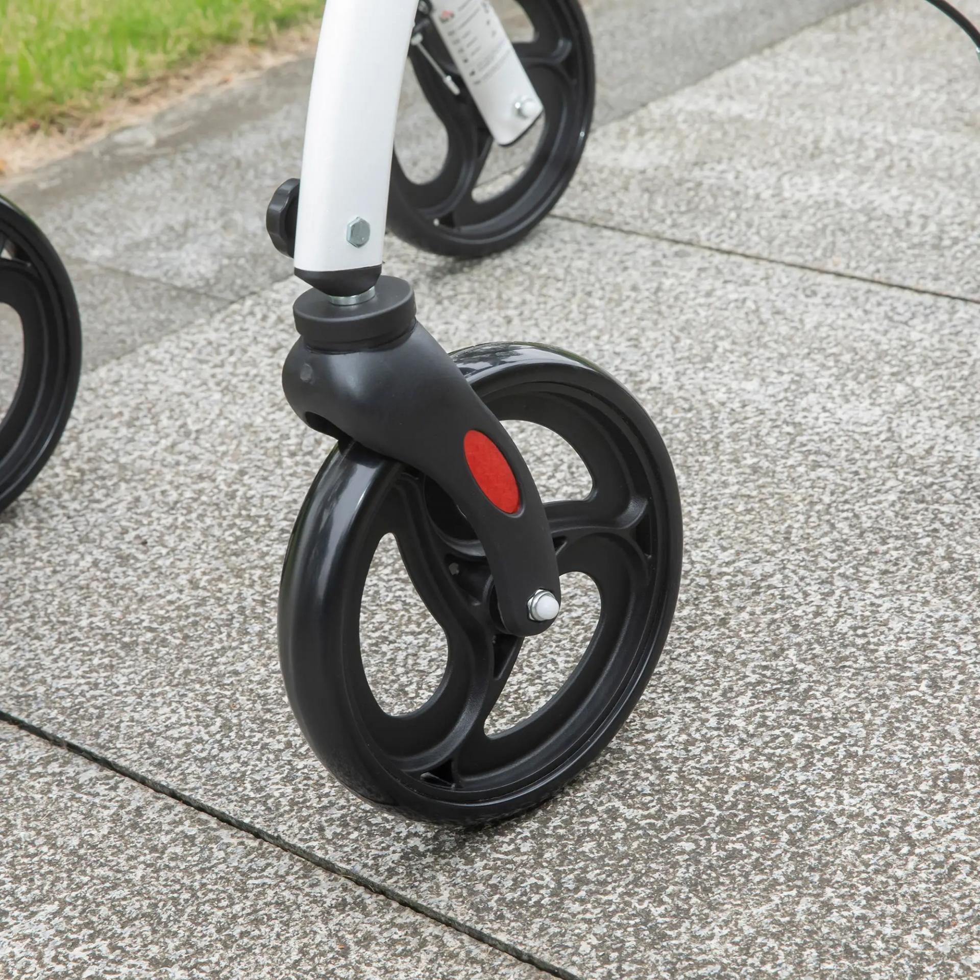Andador para Personas Mayores Plegable de Aluminio con 4 Ruedas Bandeja Altura Ajustable Frenos de Maneta Blanco