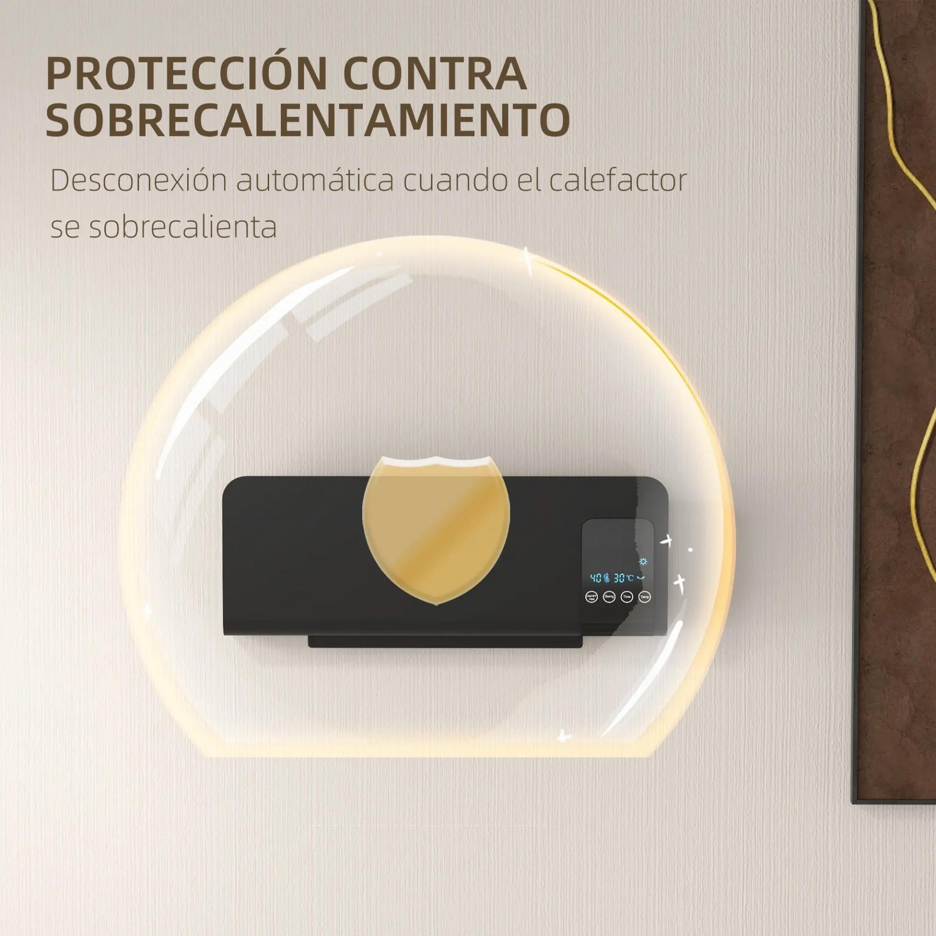 Calefactor Eléctrico de Pared 1000W/2000W Estufa con Pantalla LED y Mando a Distancia 54,5x12x21,5 cm Negro