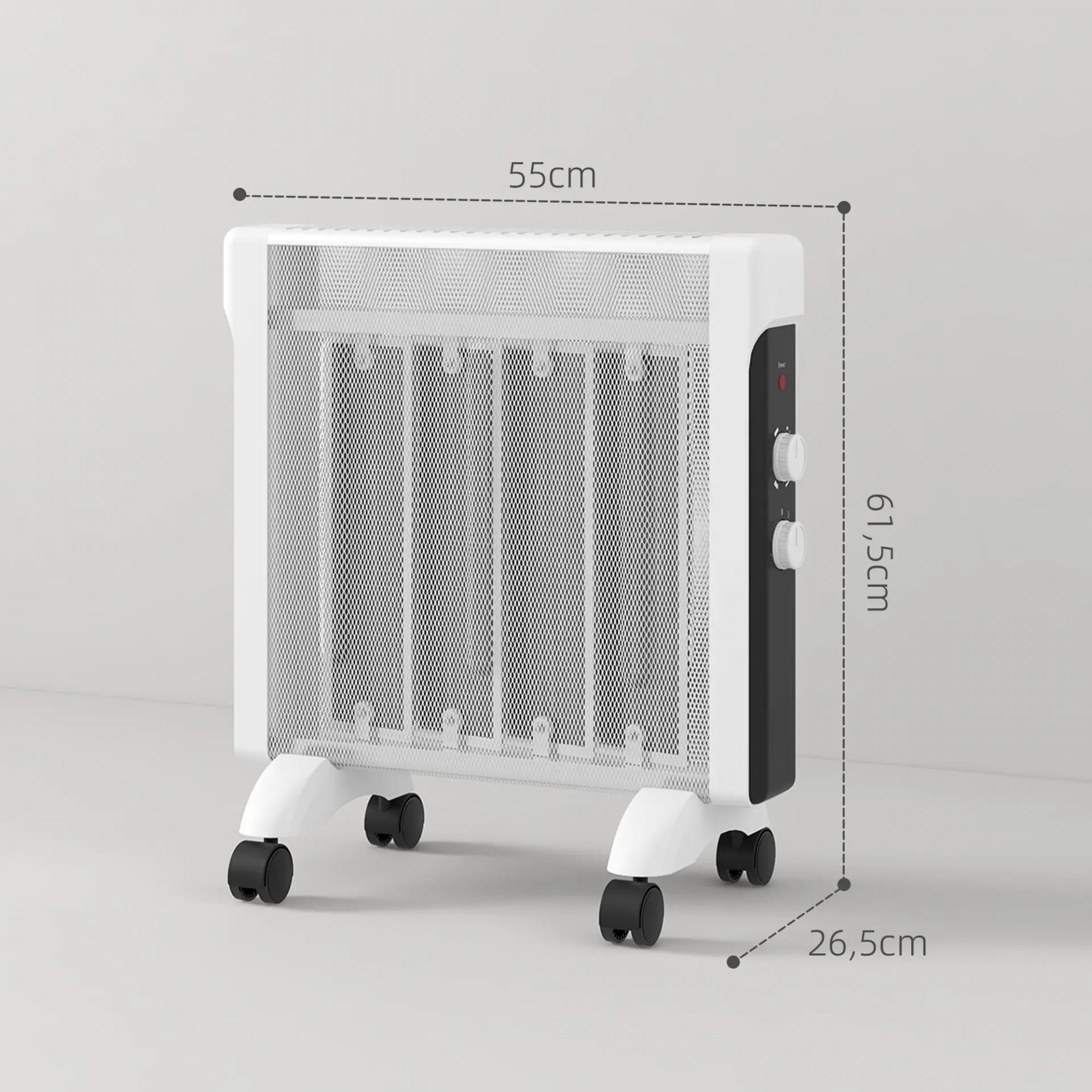 Radiador Eléctrico bajo Consumo 2000 W Calefactor de Mica con Protección contra Vuelcos y Sobrecalentamiento Blanco
