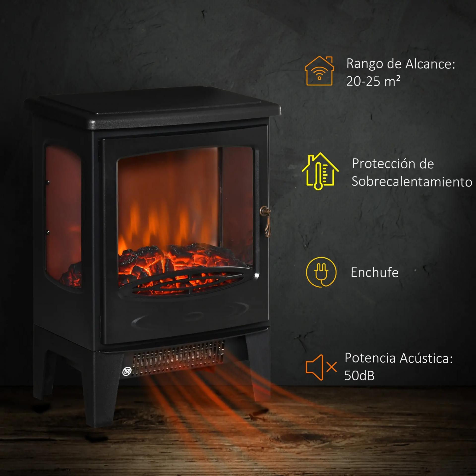 Chimenea Eléctrica 900W/1800W con Efecto de Llama Temperatura Ajustable y Protección Sobrecalentamiento Negro