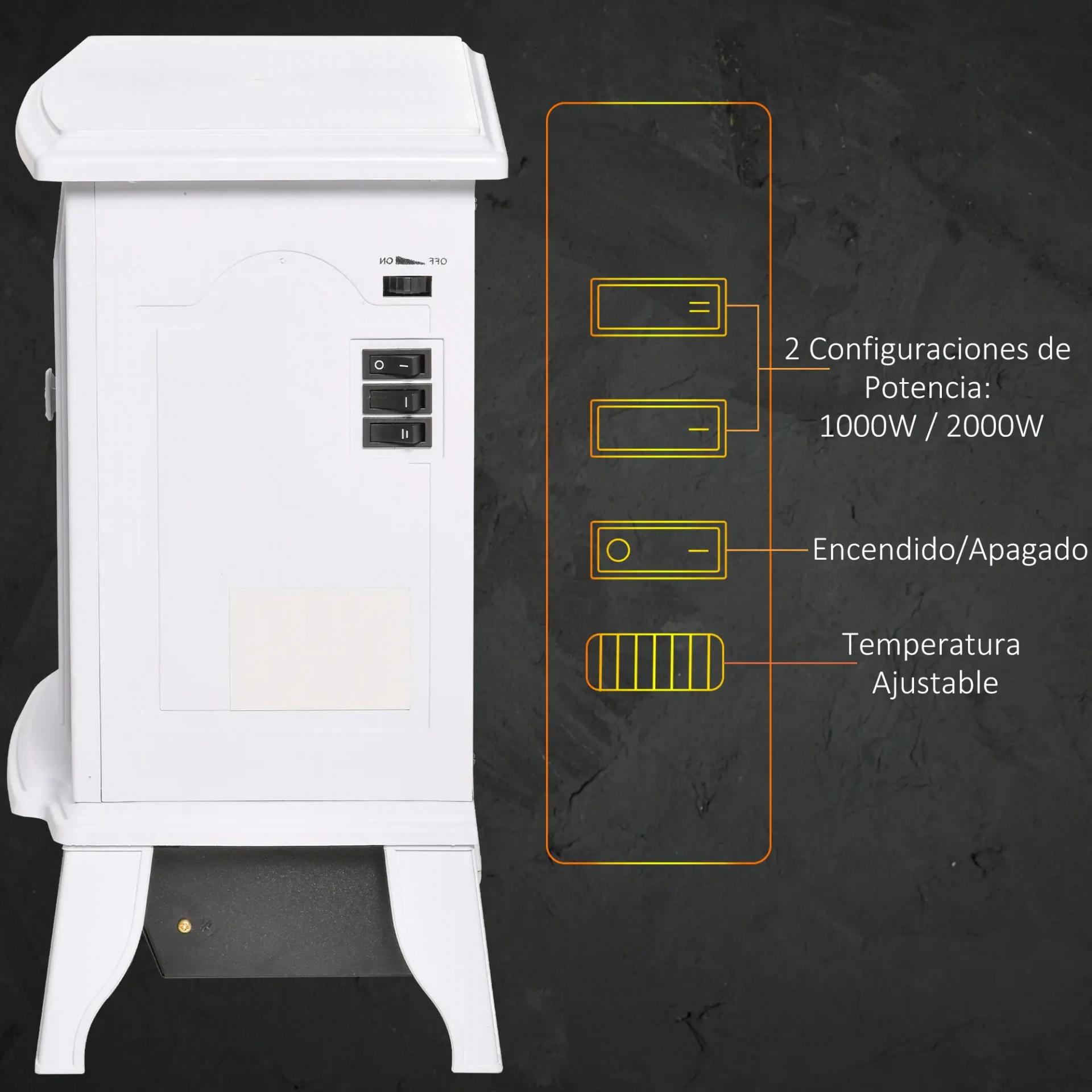 Chimenea decorativa con Termostato Ajustable y Protección Sobrecalentamiento para Salas 20-25 m² 36,5x24x45,5 cm Blanco