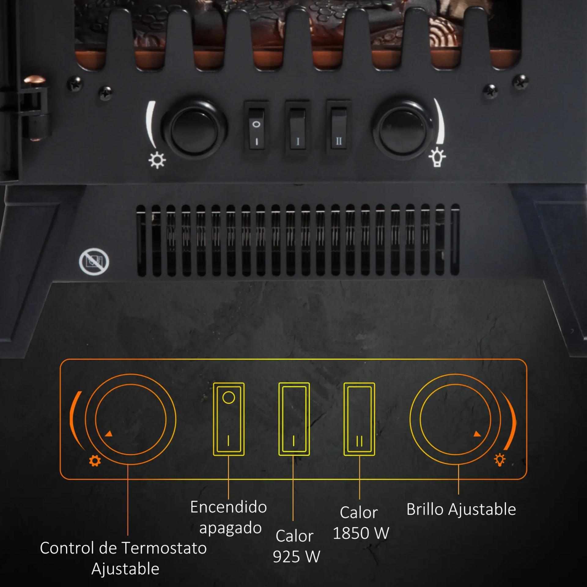 - MÁXIMA SEGURIDAD: Para tu tranquilidad, la chimenea está equipada con un sistema de corte térmico que se apaga automáticamente si se detecta sobrecalentamiento, garantizando un uso seguro