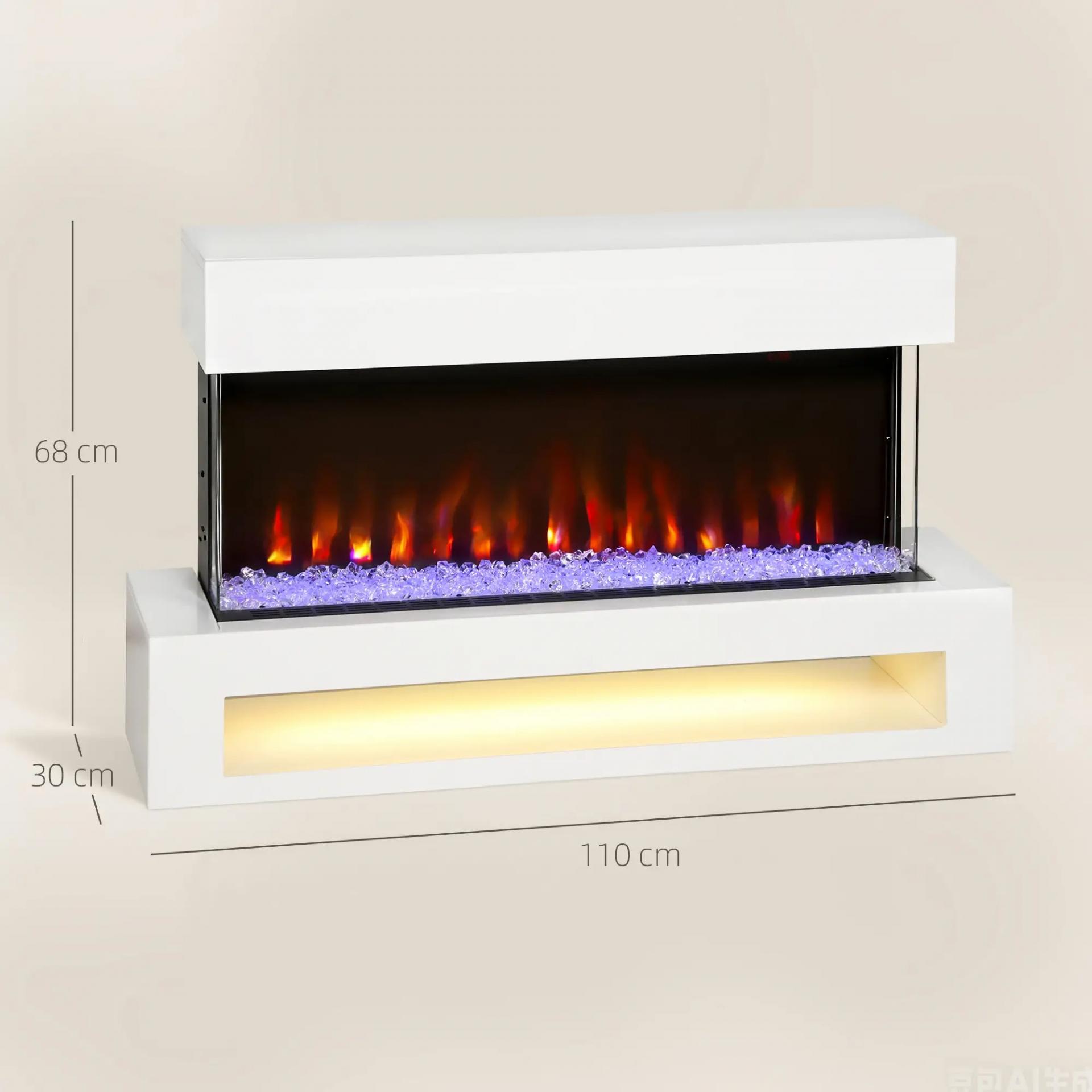 Chimenea eléctrica con 11 colores de llama, 10 colores de lecho de cristales, 1000W/2000W, mando a distancia, versátil, blanco