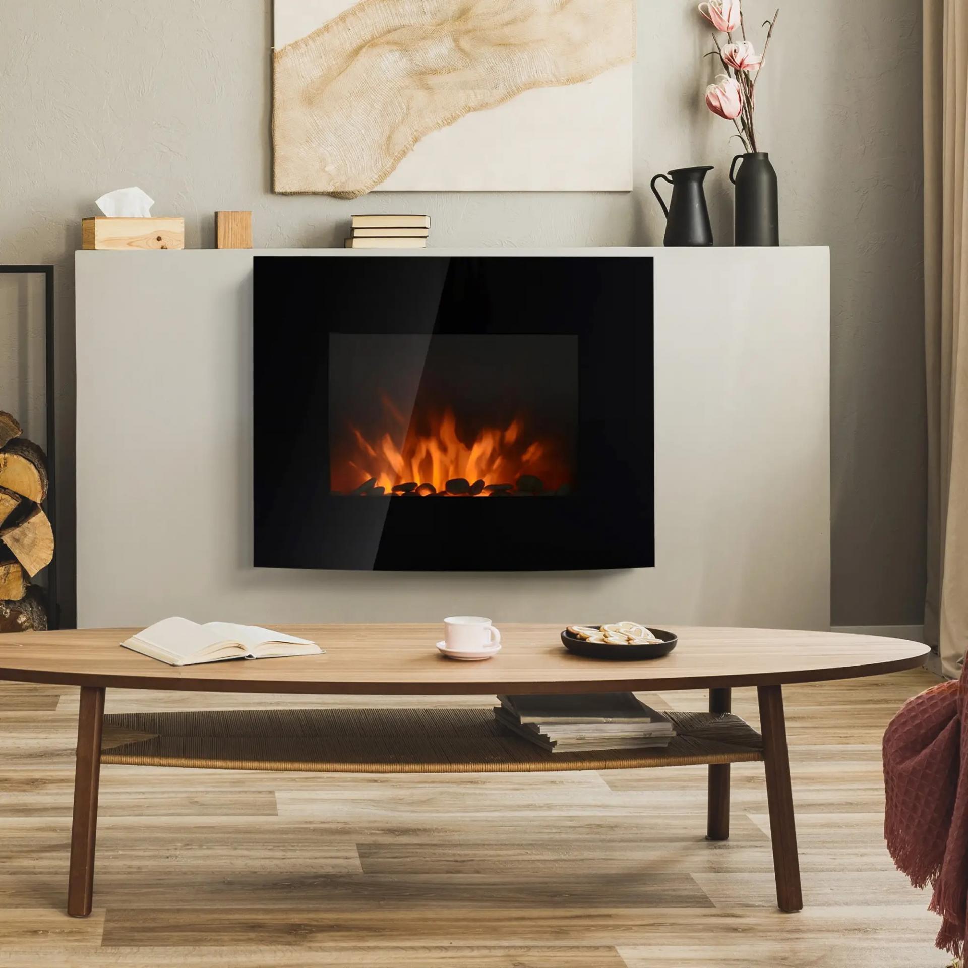 Chimenea Eléctrica de Pared 900/1800W Chimenea Silenciosa con Mando a Distancia Termostato Efecto Llamas Negro
