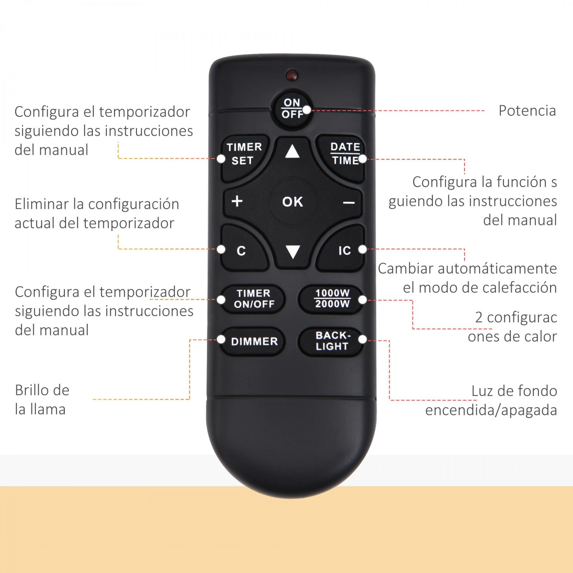 - FUNCIÓN INTELIGENTE: Chimenea eléctrica con control remoto (pilas no incluidas) con alcance de 1-5 m. Incluye temporizador, termostato electrónico y función de inicio adaptativa. Ofrece dos niveles de potencia: 900 y 1800W