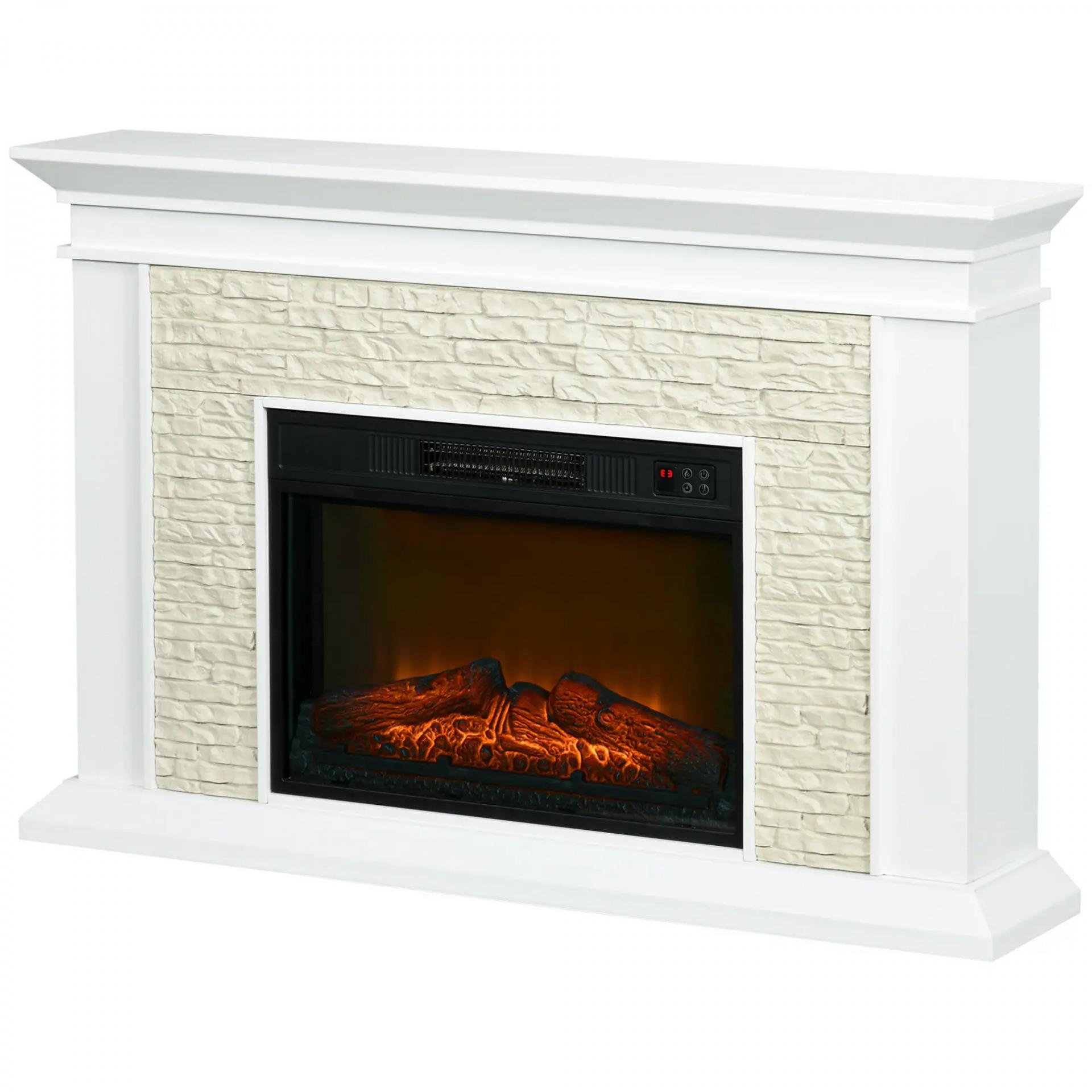 Chimenea Eléctrica con Calefacción 1800W Efecto de Llama con Control Remoto Temporizador 120x24x80 cm Blanco