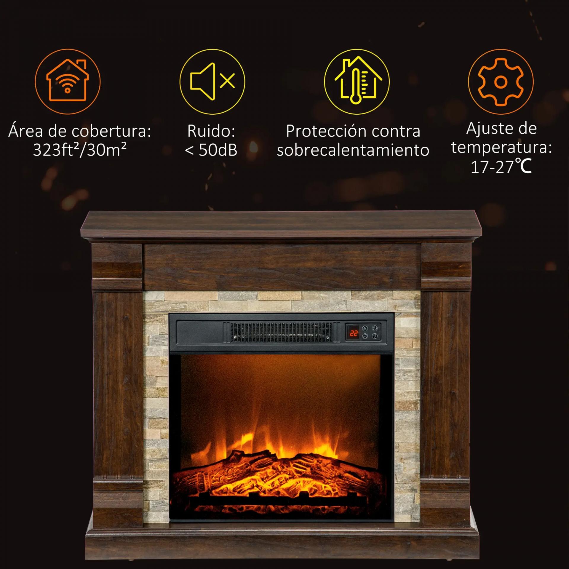 Chimenea Eléctrica 1800W Calentador de Chimenea con Efecto de Llama Mando a Distancia Temporizador 80x21,6x67,8cm Marrón
