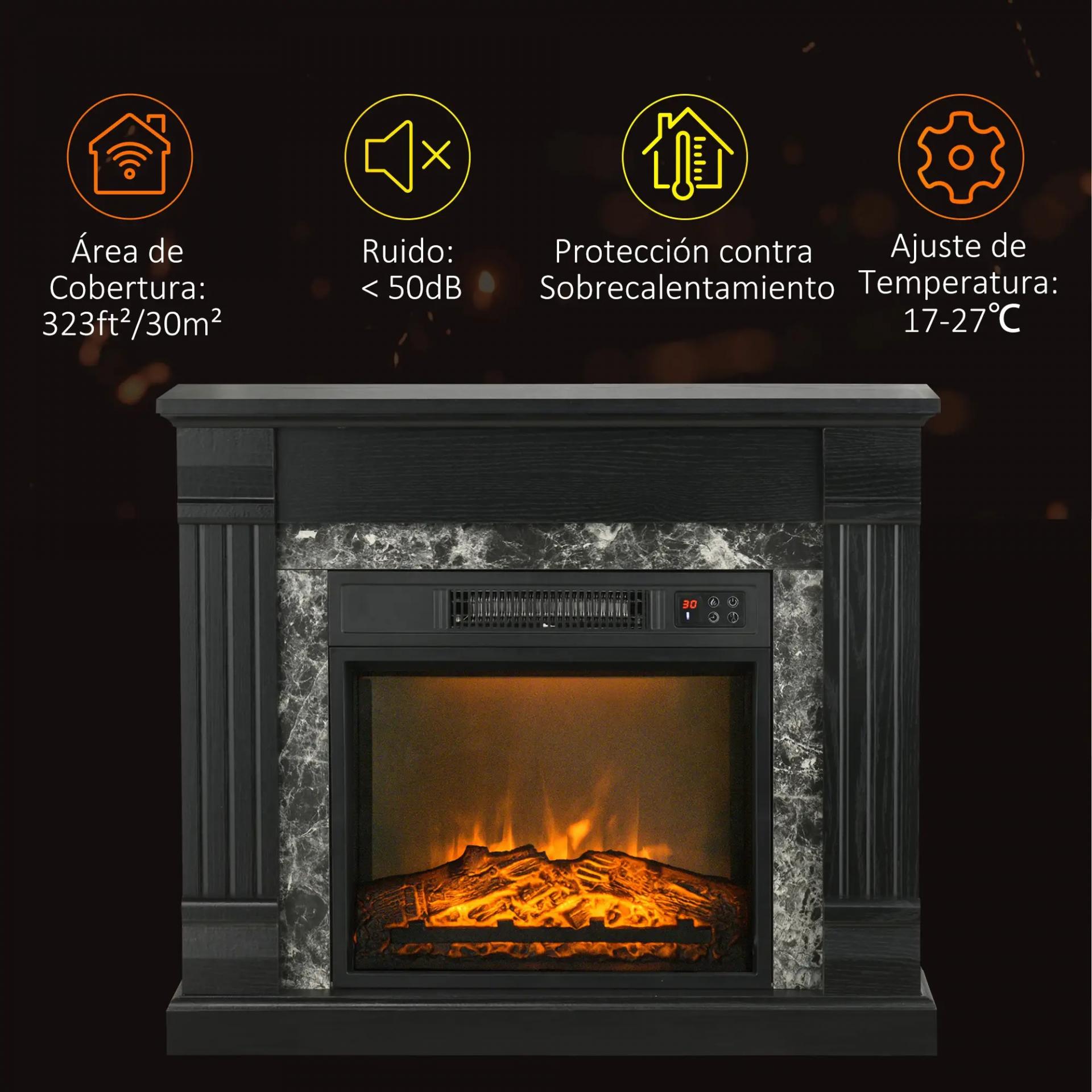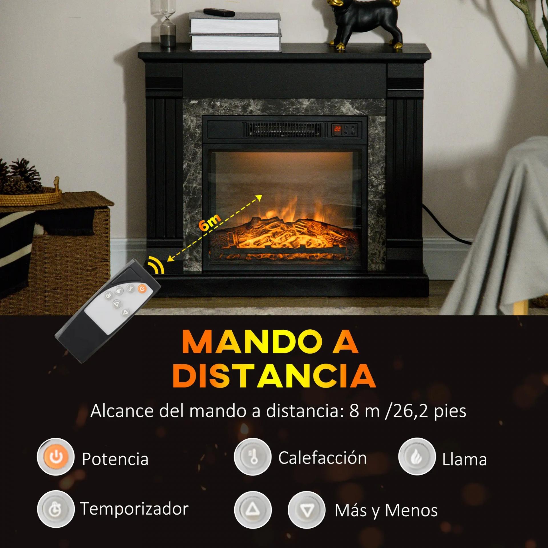 Chimenea Eléctrica 1800W Chimenea Decorativa con Efecto de Llama Mando a Distancia Temporizador 80x21,6x67,8cm Negro