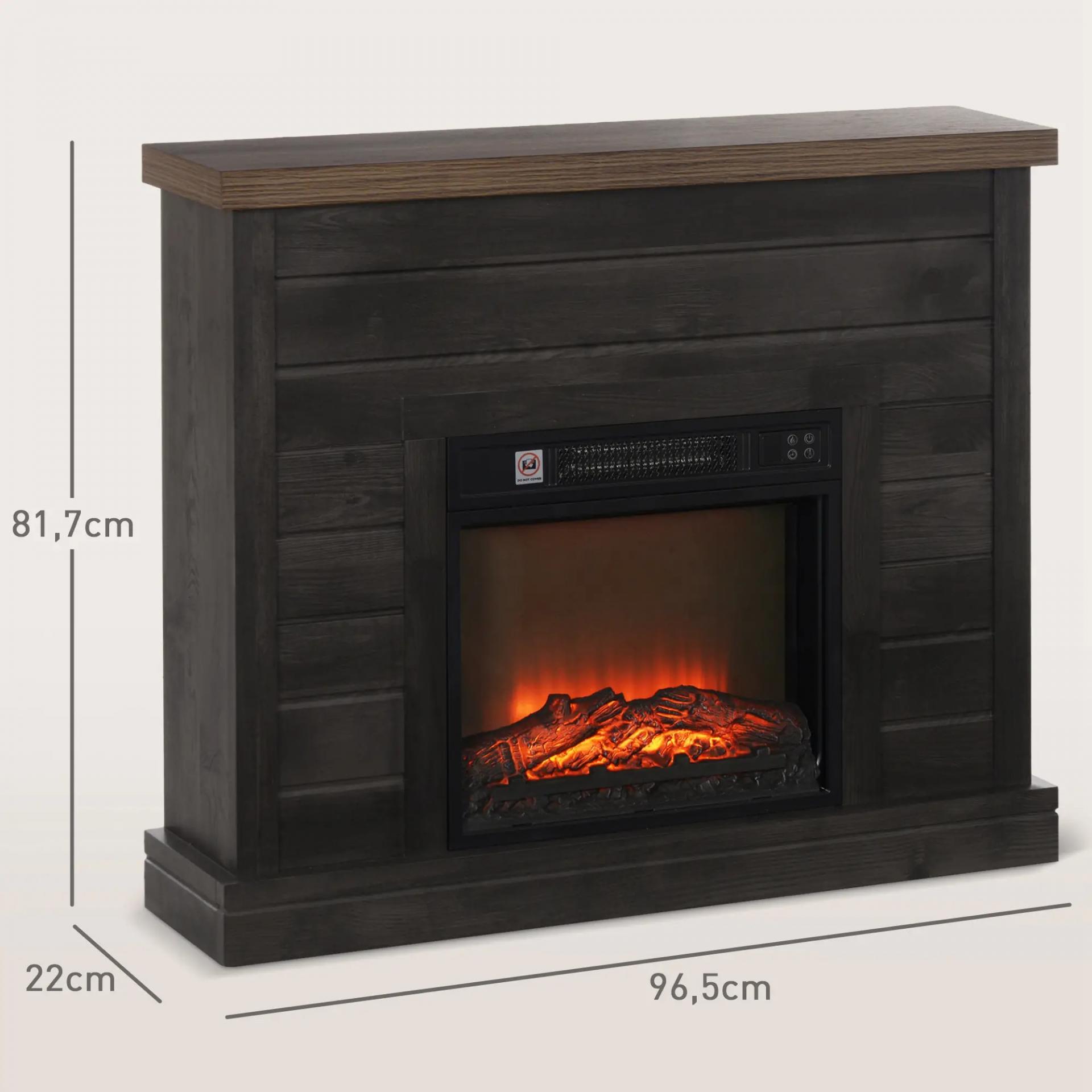 Chimenea Eléctrica 1800W con Efecto de Llama Mando a Distancia Temporizador Semanal para Sala 30 m² Gris Oscuro