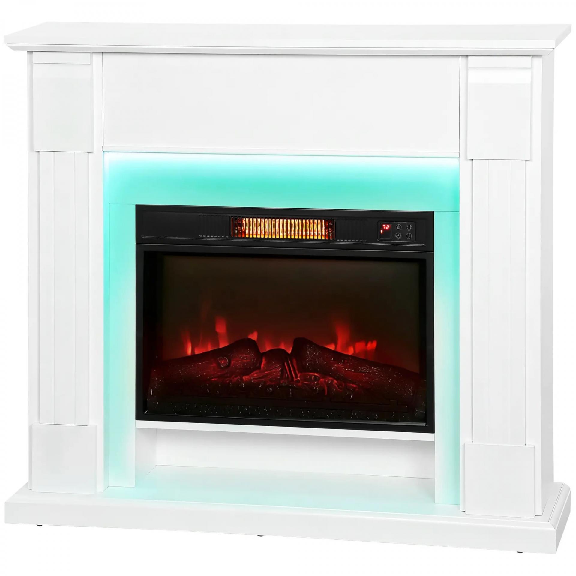 Chimenea Eléctrica Empotrable con Efecto de Llama 3D Tira de Luz LED RGB 1800W Temporizador Termostato Blanco
