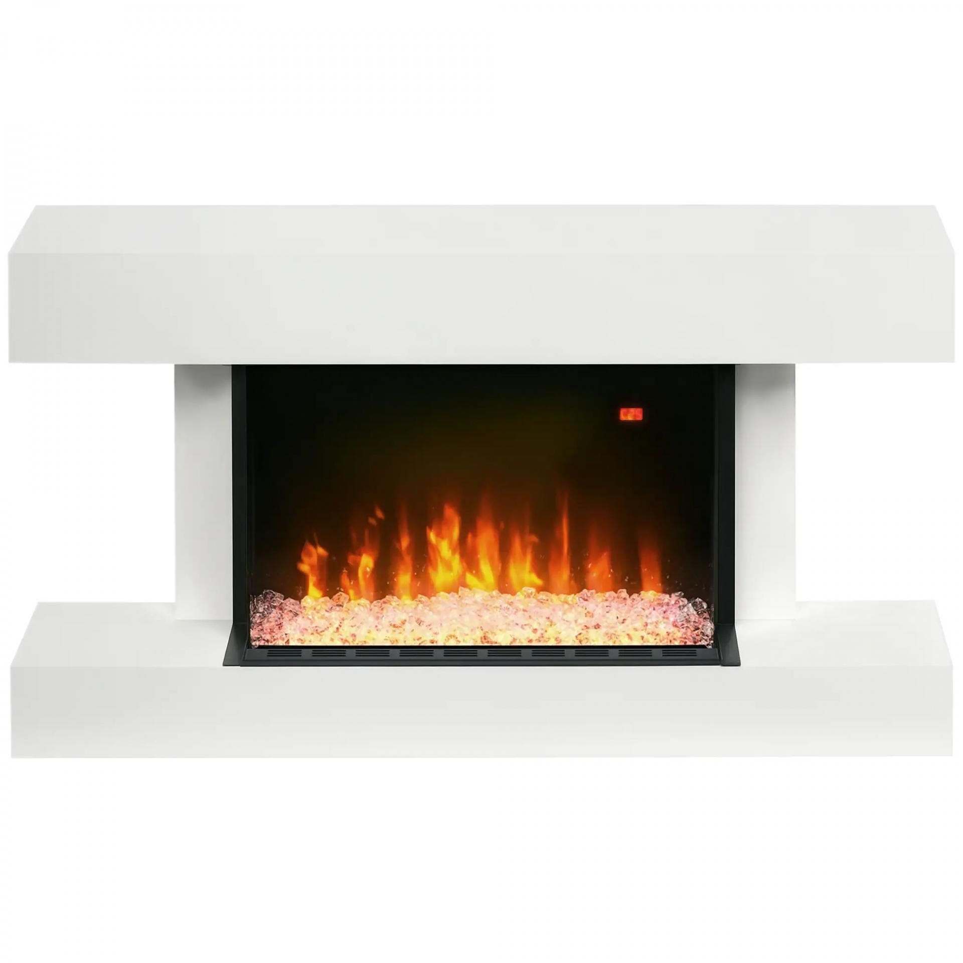 AMBIENTE ACOGEDOR: Sumérgete en un ambiente acogedor con esta chimenea que ofrece un efecto de llama realista y brillantes piedras de cristal sintético. Además, cuenta con una práctica repisa en la parte superior ideal para colocar cuadros de fotos y objetos de decoración. Puedes montarla en la pared o utilizarla de forma independiente, olvidándote de cargar más leña