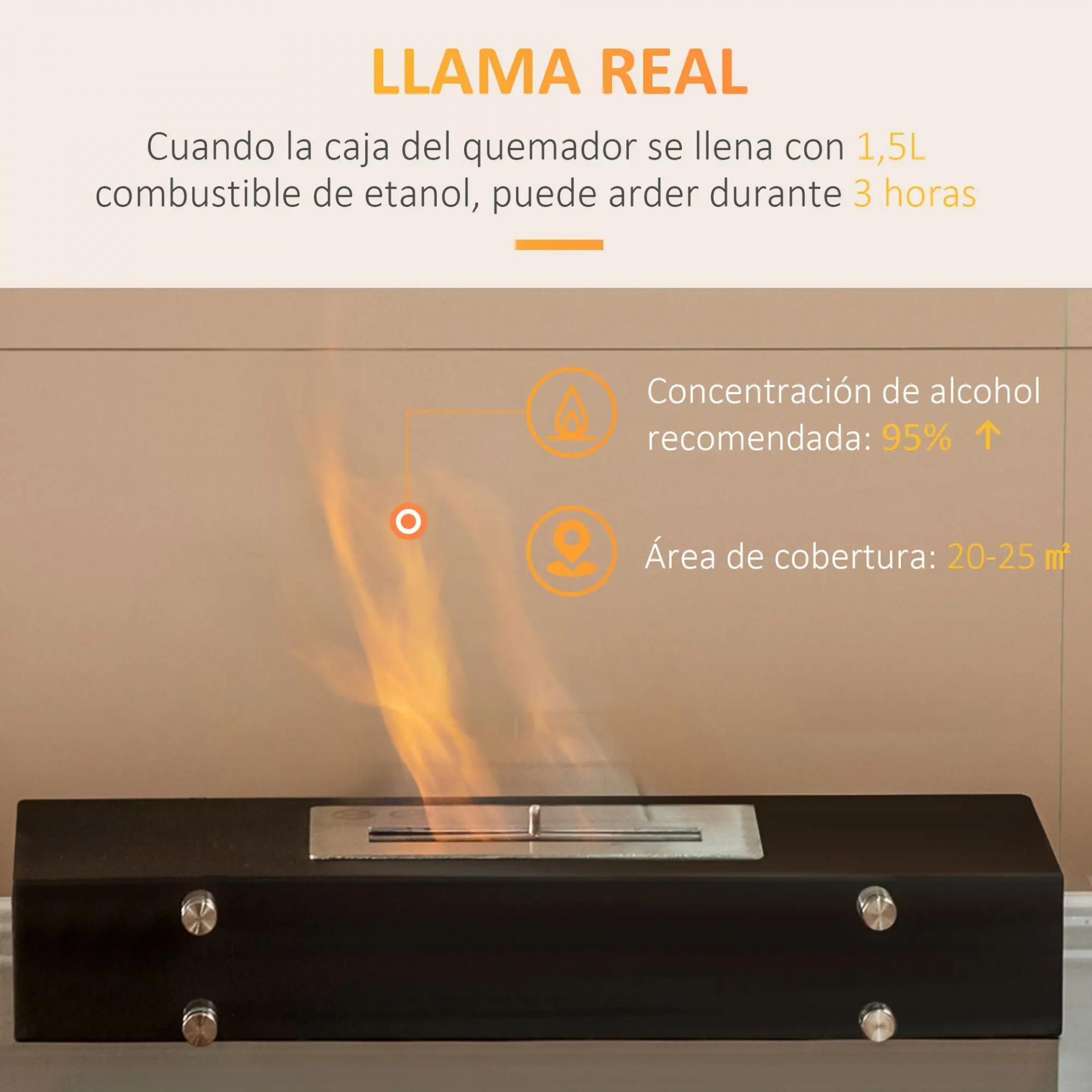 Chimenea de Bioetanol 7000 BTU con Tanque de 1,5 L Tiempo de Combustión 3H para Interiores 20-25 m² 60x26x50 cm Negro