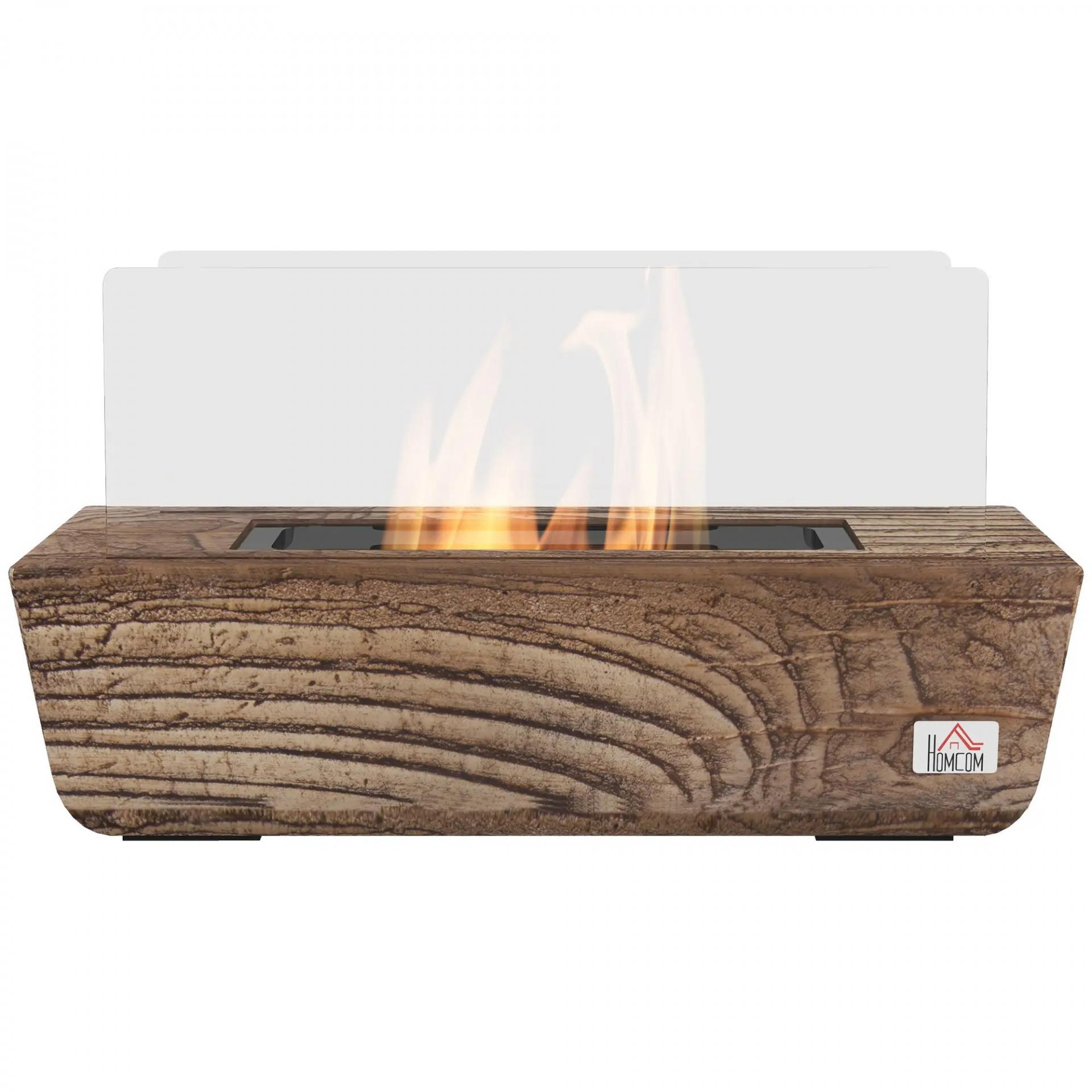Chimenea Bioetanol Sobremesa Capacidad de 150ml 1000BTU Combustión de 45 Minutos para Interior 5-8㎡ 33x16x18 cm Roble